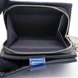 | Accessorizing gets a new avatar with this chic Lady Dior wallet from Dior. It comes crafted from metallic blue Microcannage leather and features a front cross-over strap and the classic 'DIOR' letter charms. It opens to a leather and fabric interior that houses slip pockets, a zip pocket, and multiple card slots. The neatly stitched edges further add to its appeal. |