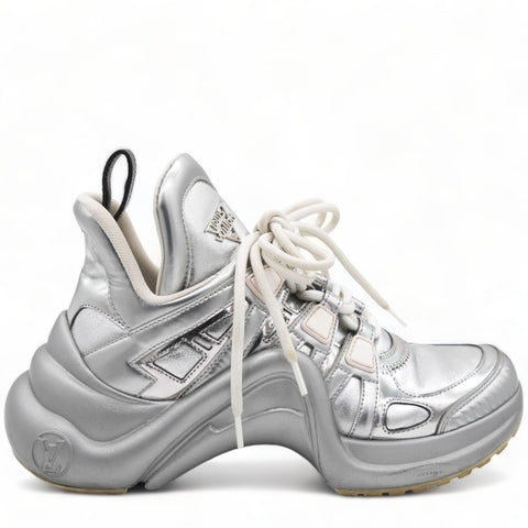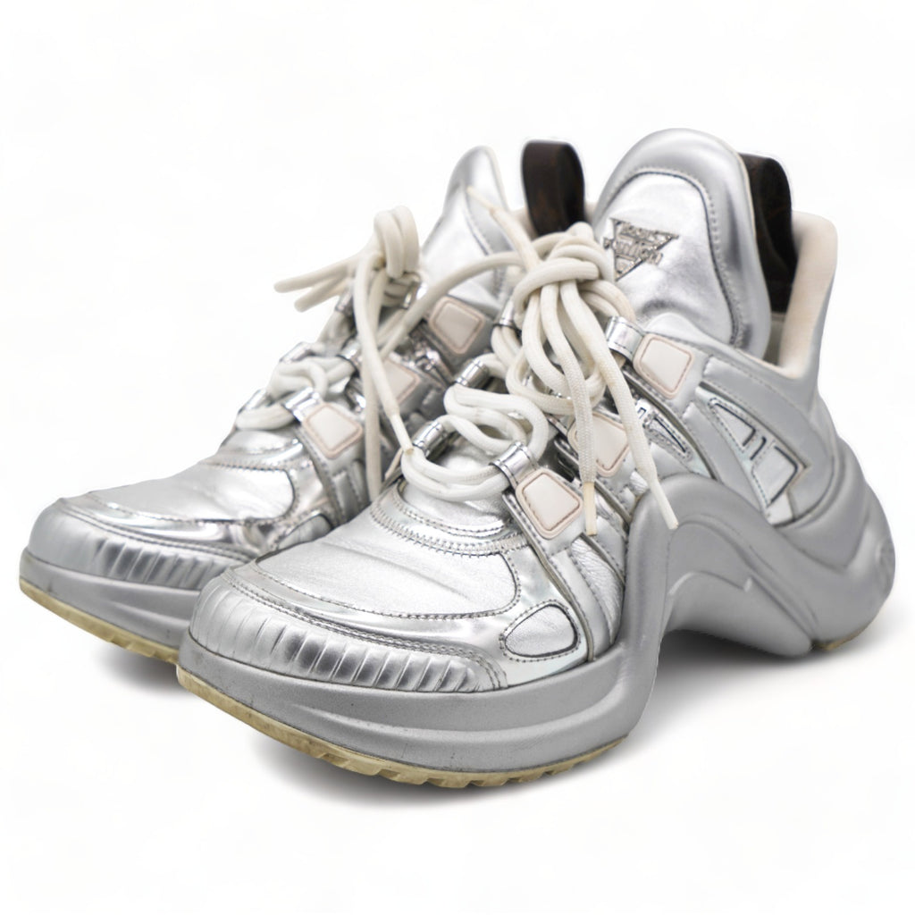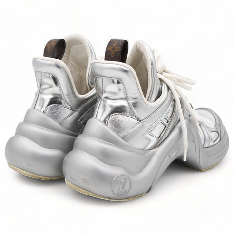 Metallic Calfskin Technical Nylon LV Archlight Sneakers Silver 36