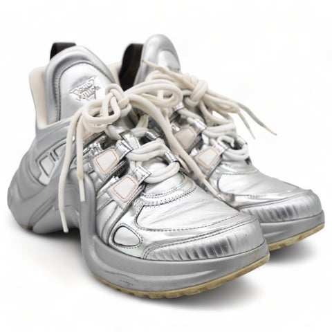 Metallic Calfskin Technical Nylon LV Archlight Sneakers Silver 36