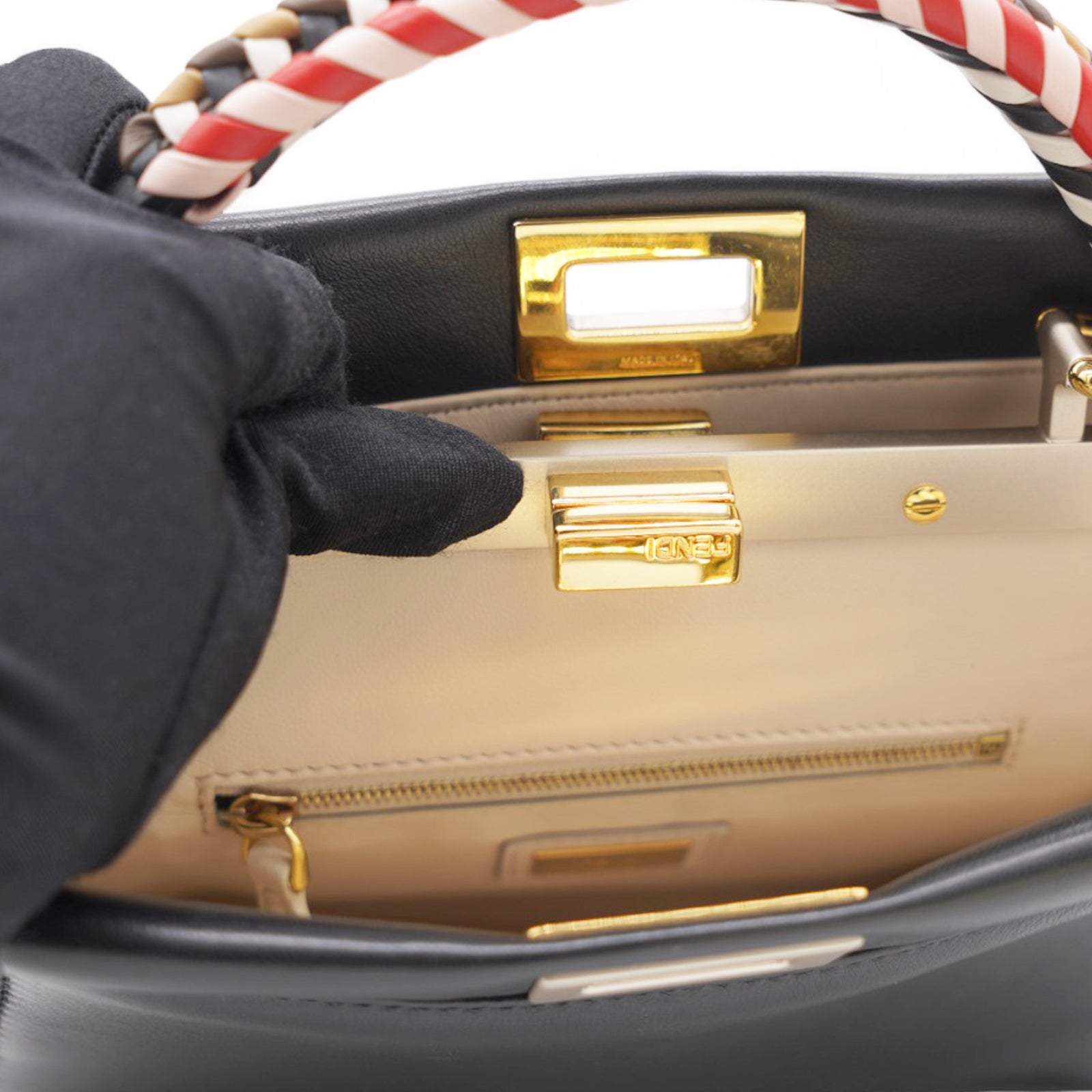 Mini Peekaboo Nappa Leather with braided Handle Black