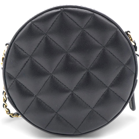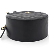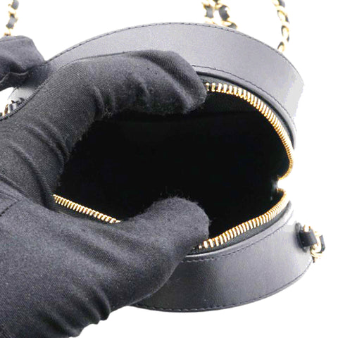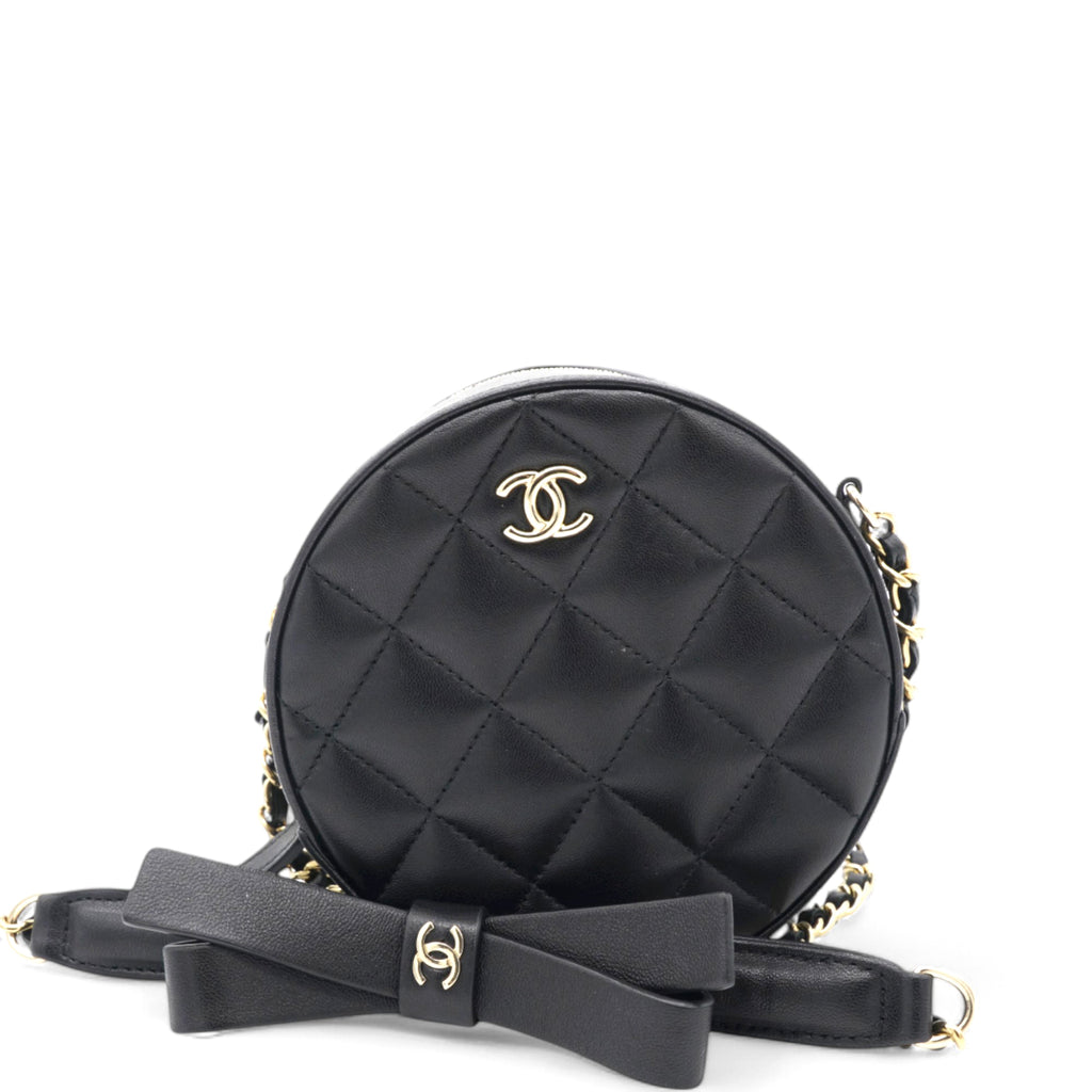 Mini Round Purse Vanity Lambskin Leather Black Bow Knot