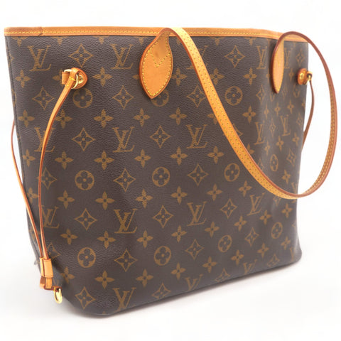 | This stylish tote is crafted of classic Louis Vuitton monogram on coated canvas. It features vachetta cowhide leather trim, shoulder straps, and side cinch cords. The top is open to a beige striped fabric interior with a cursive logo and fleur de monogram details. |