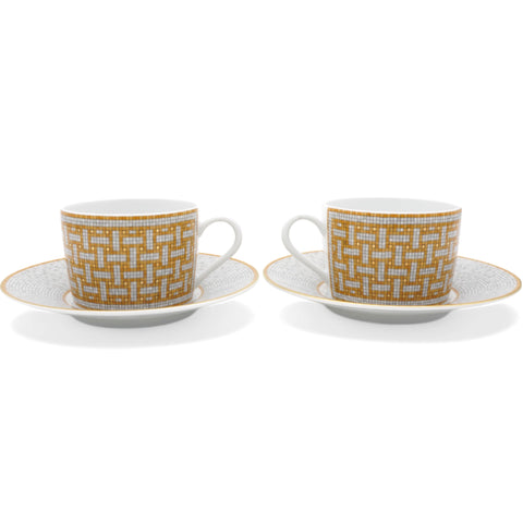 | Decorative mosaics are screen-printed and applied by hand using 24-carat platinum tiles. Benoit Pierre Emery's design and geometric pattern in the Mosaique au 24 platinum collection reflects the original decor of 24 Faubourg Saint-Honore in Paris |
