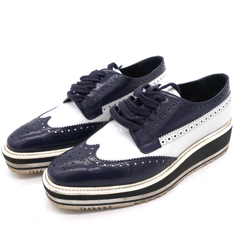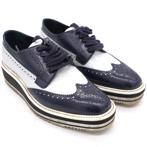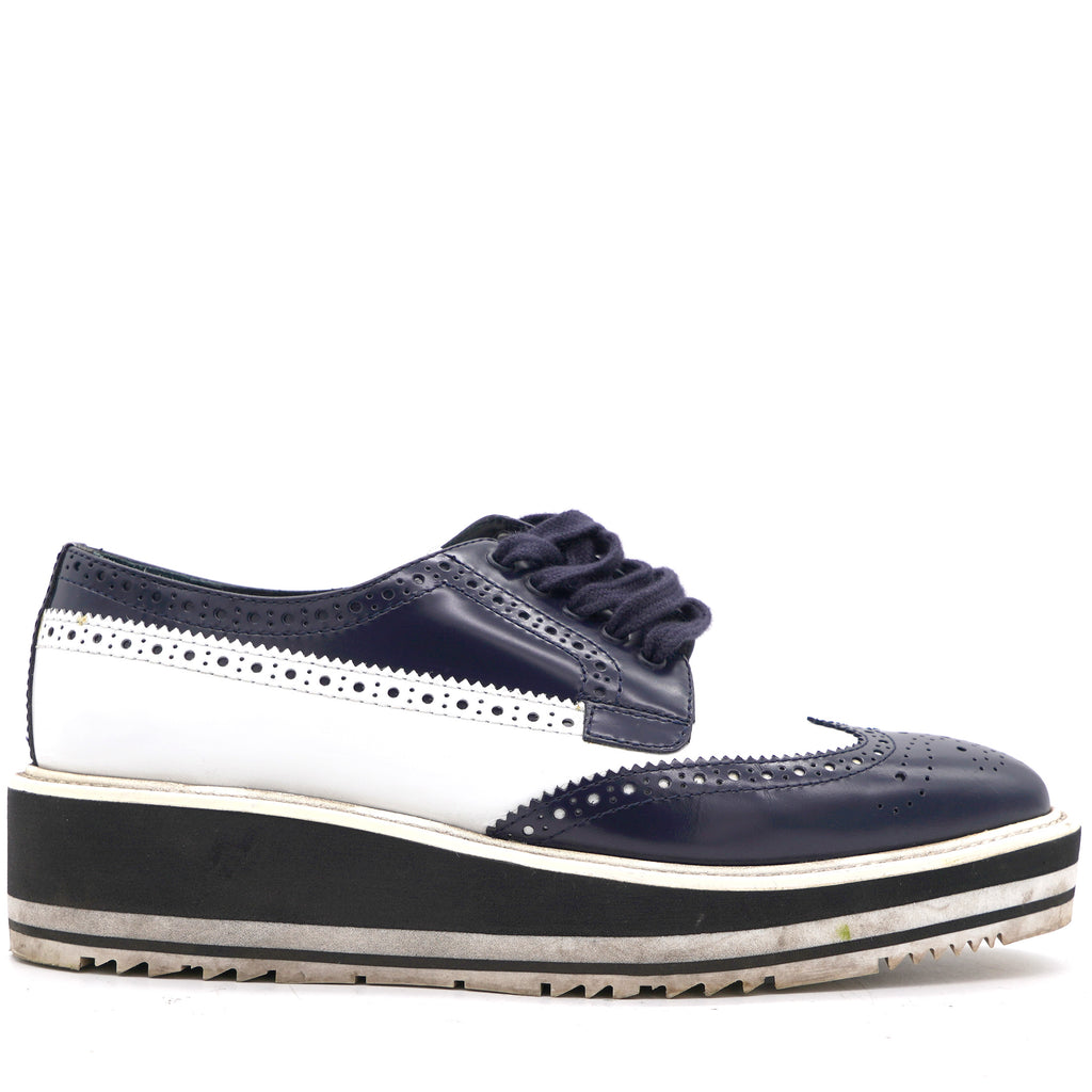 Navy/White Leather Lace-Up Derby Shoe 37.5