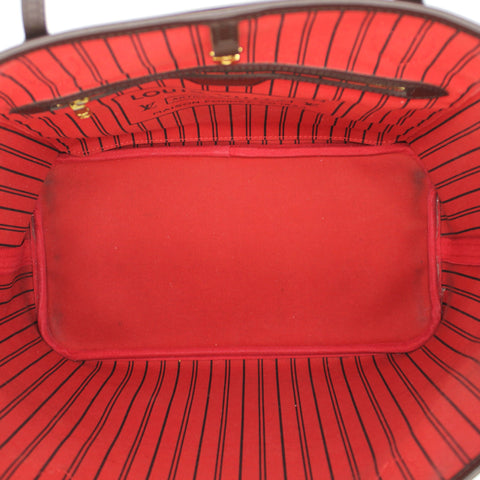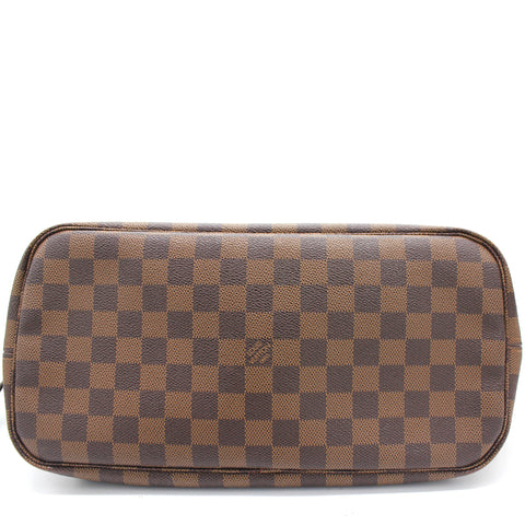 | The Neverfull MM tote unites timeless design with heritage details. Elegant in Damier Ebene canvas with natural cowhide trim, it is roomy but not bulky, with side laces that cinch for a sleek allure or loosen for a casual look. Slim, comfortable handles slip easily over the shoulder or arm. Lined in colorful textile, it features a removable pouch which can be used as a clutch or an extra pocket. |