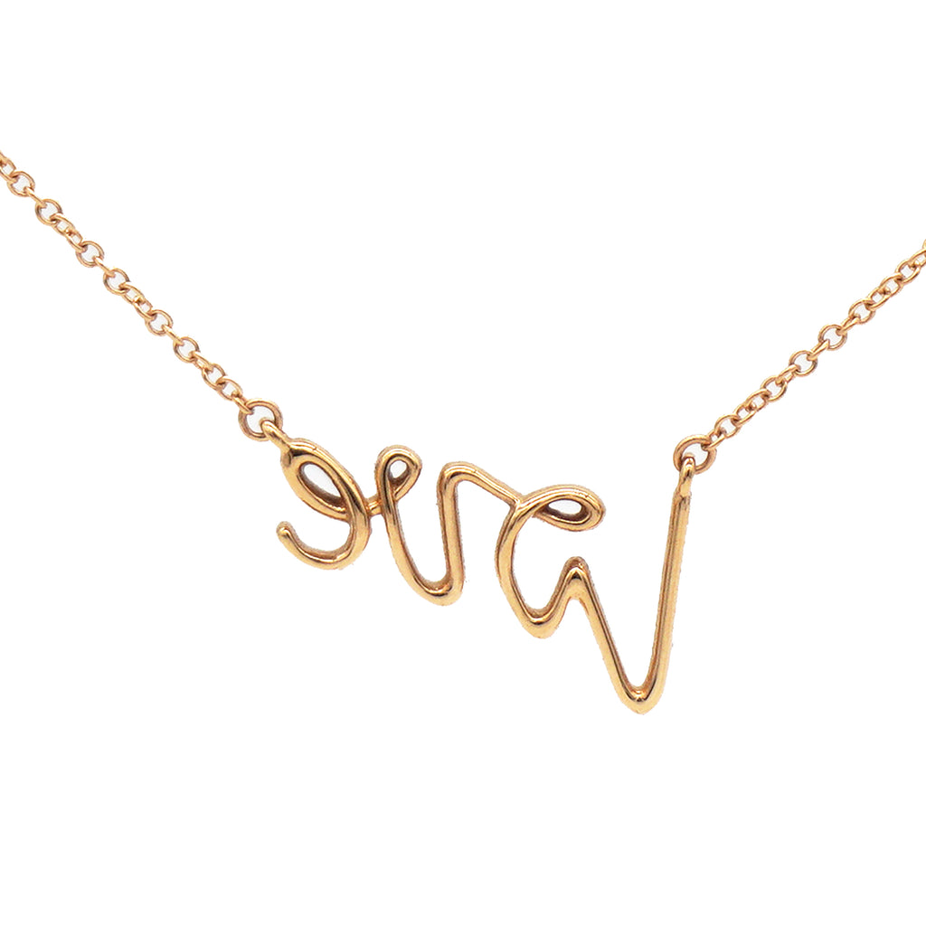 Featuring the handwriting of Paloma Picasso herself. This intense collection was inspired by the scrawled graffiti that often appears on New York buildings. Simple and elegant, this pendant is the perfect addition to any outfit.