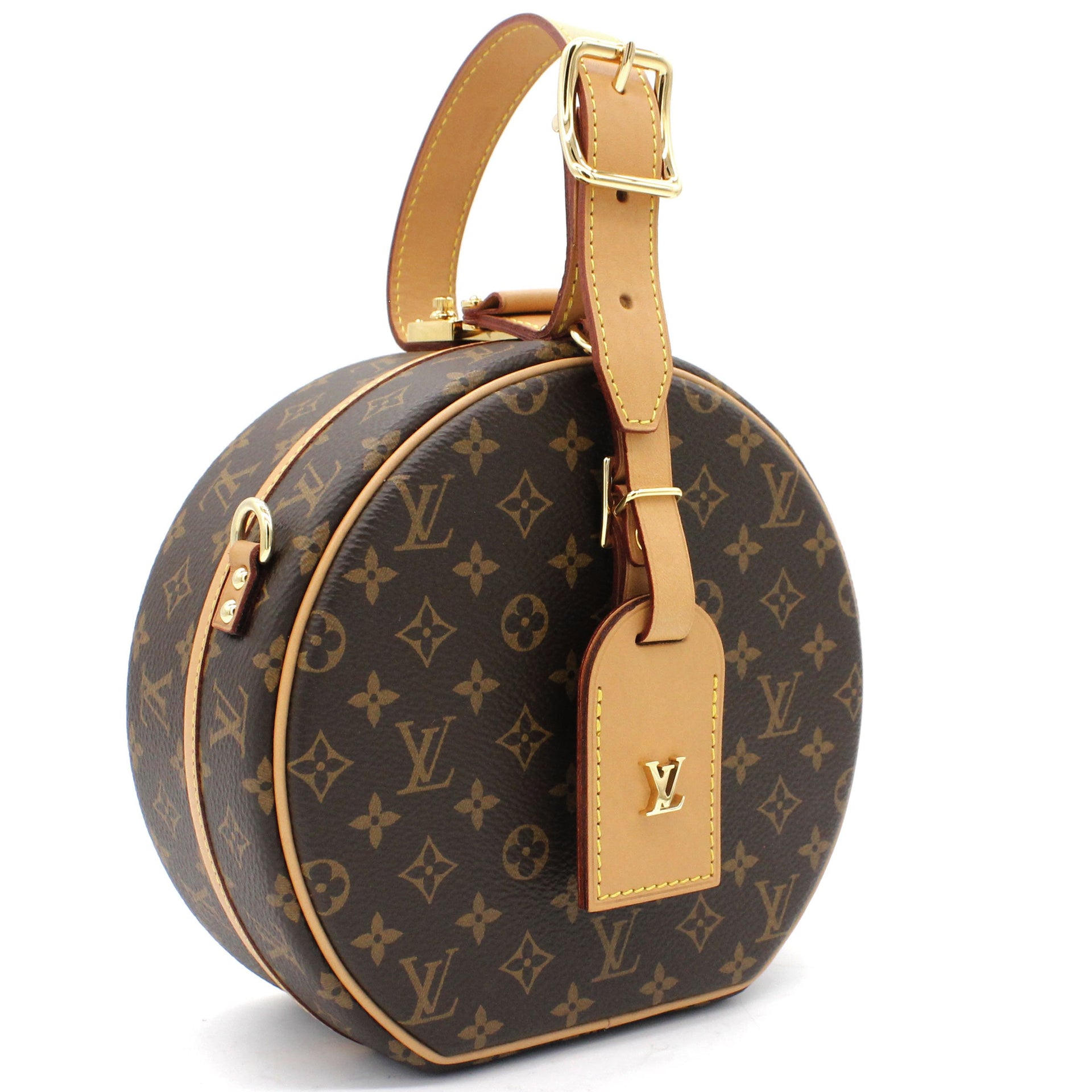 | Louis Vuitton’s iconic hatbox is reimagined as an adorable day-to-evening bag. Small yet practical (it fits an iPhone 7), this exclusive piece comes in two versions: classic Monogram canvas with cowhide trim; or trendy Reverse Monogram with black calfskin. |