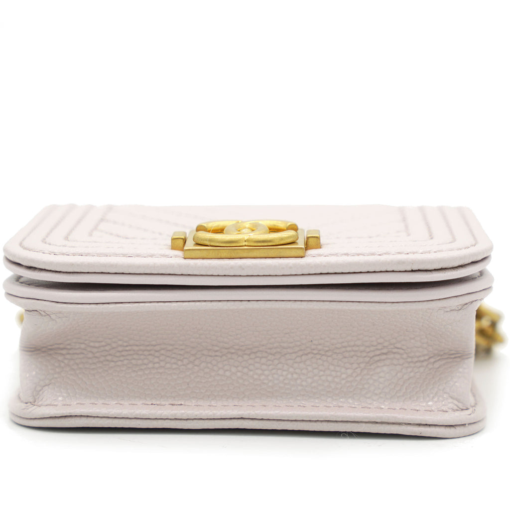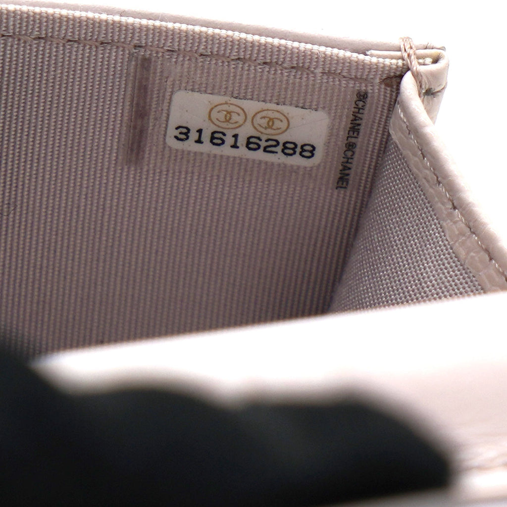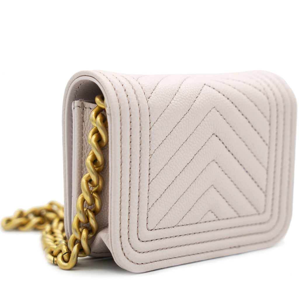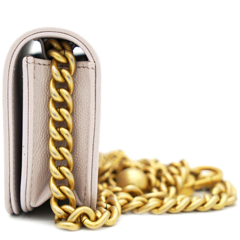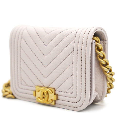 | This cardholder from Chanel is absolutely gorgeous to look at! Crafted from caviar leather in pink, it features the signature quilts, the Boy CC logo on the front flap, and an intertwined chain link for you to parade it in style. Organize your essentials in style with this beautiful creation. |