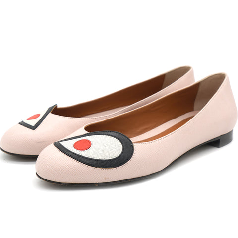 Effortlessly feel and look your best whenever you step out in this gorgeous pair of ballet flats from Fendi. Crafted from pink saffiano leather, the ballet flats are styled with monster eyes in black, white and red on the toes.