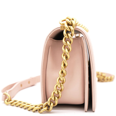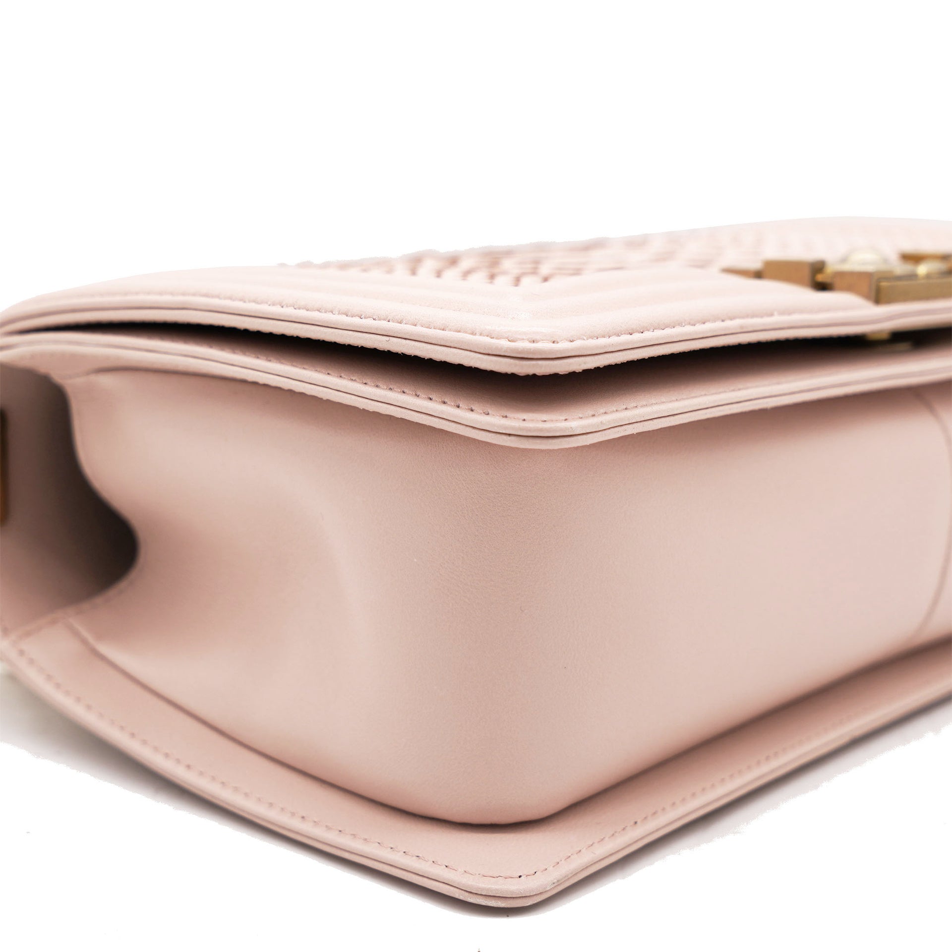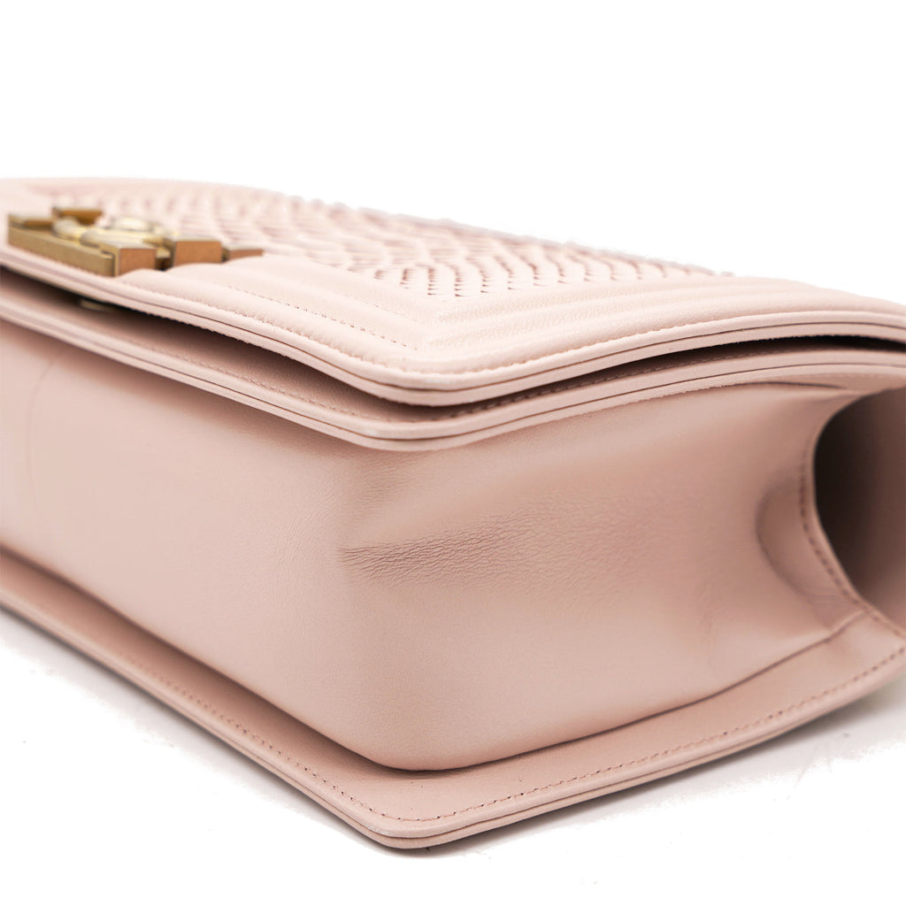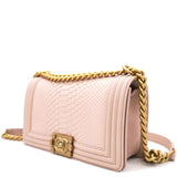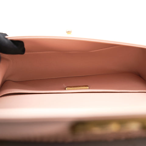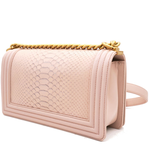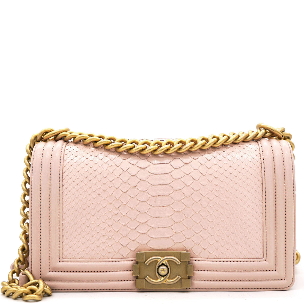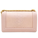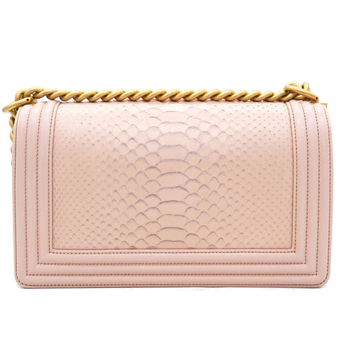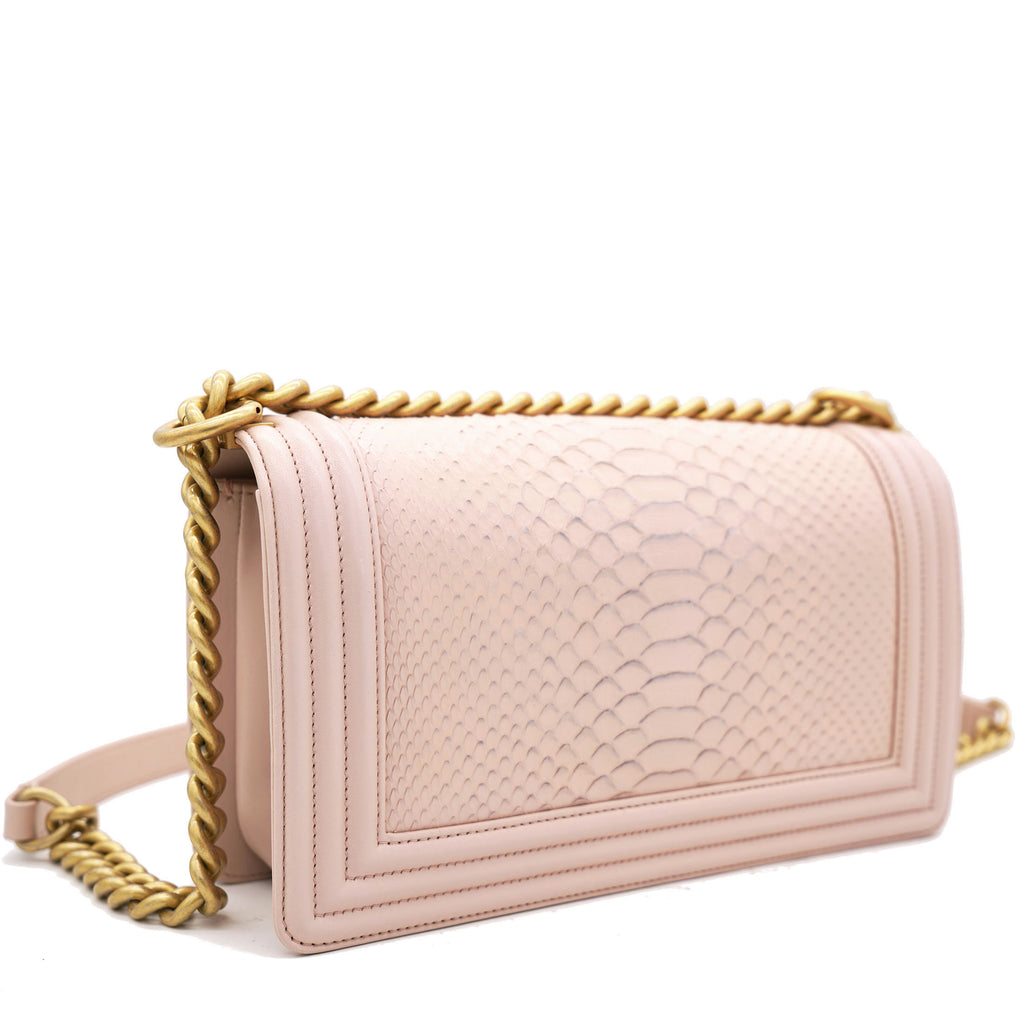 | Every Chanel creation deserves to be etched with honour in the history of fashion as they carry irreplaceable style. Like this stunner of a Boy Flap that has been exquisitely crafted from rare snakeskin leather. It does not only bring a pink shade but also their signature label on the fabric interior and the iconic Boy CC push lock on the flap. The piece has brushed gold-tone hardware, and a lovely chain link just so you can easily parade it. This flap bag, with its structured silhouette and classy style, is eyed by women worldwide. Cease the wait and make this luxurious bag yours today with pride. |
