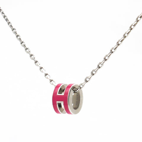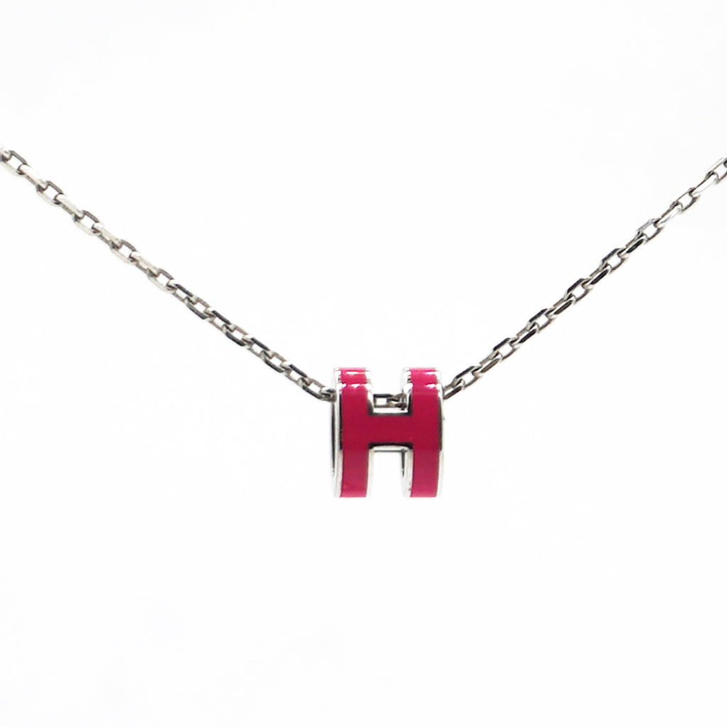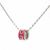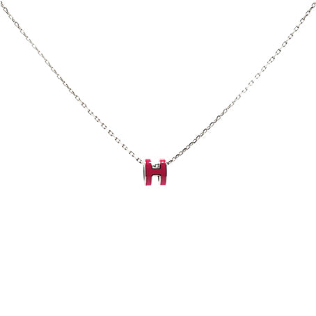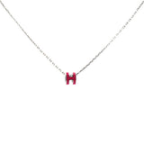 | This is an authentic HERMES Lacquered Gold Pop H Pendant Necklace in Red. This is a simple and very chic necklace from Hermes. It features a ring shape that is an elongated lacquered White “H", which hangs on a short, thin gold band. |