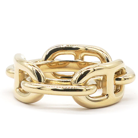 | Use this elegant and valuable piece by Hermes to secure your favorite scarf ties in style! The ring is crafted from permabrass into a chainlink silhouette. Replace the knot with this chic ring for a simpler and more fashionable look. |