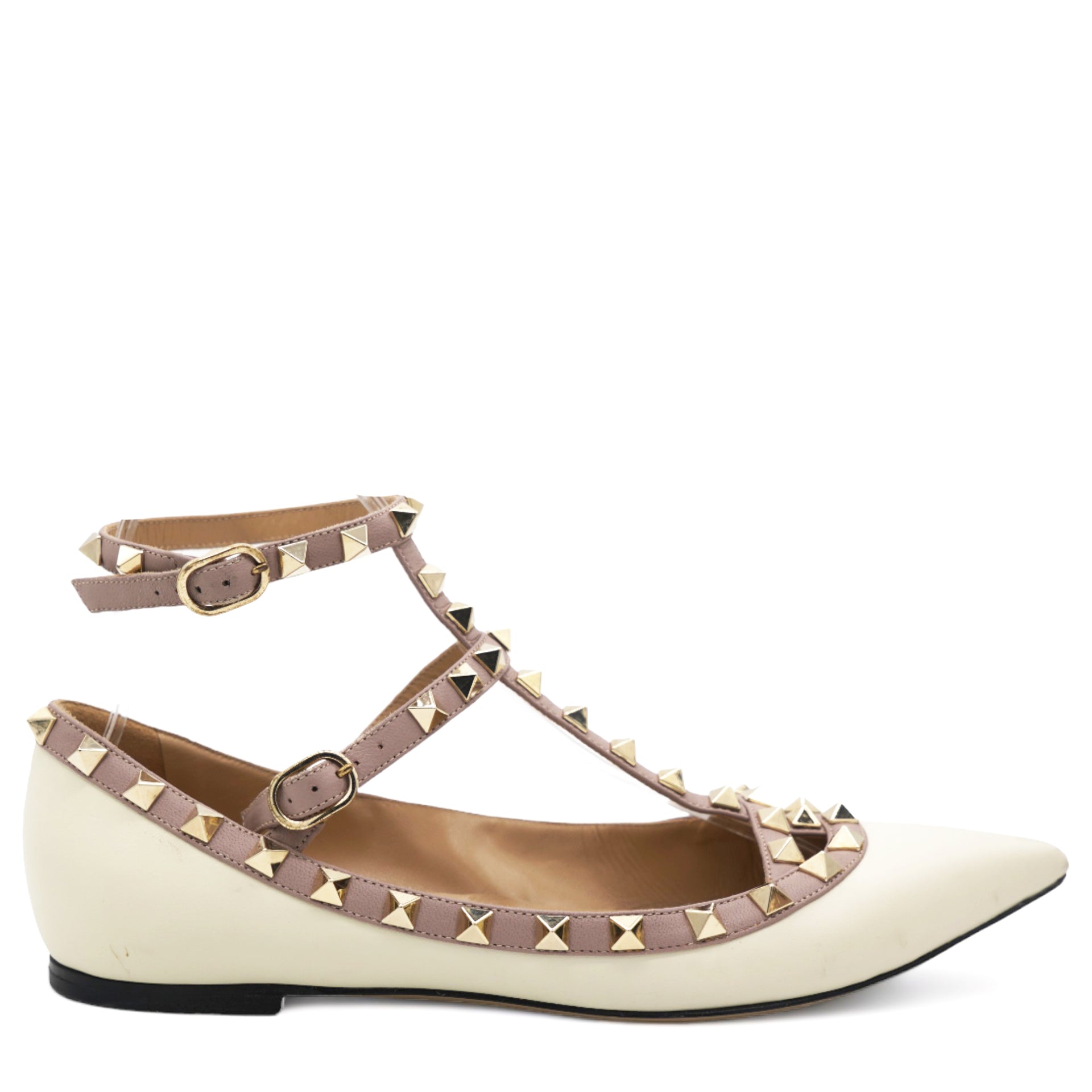 Rockstud Caged Ballet Flat Nappa Ivory 38