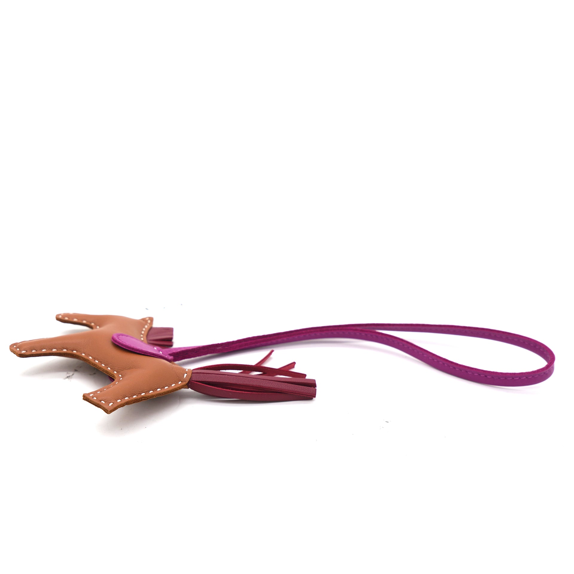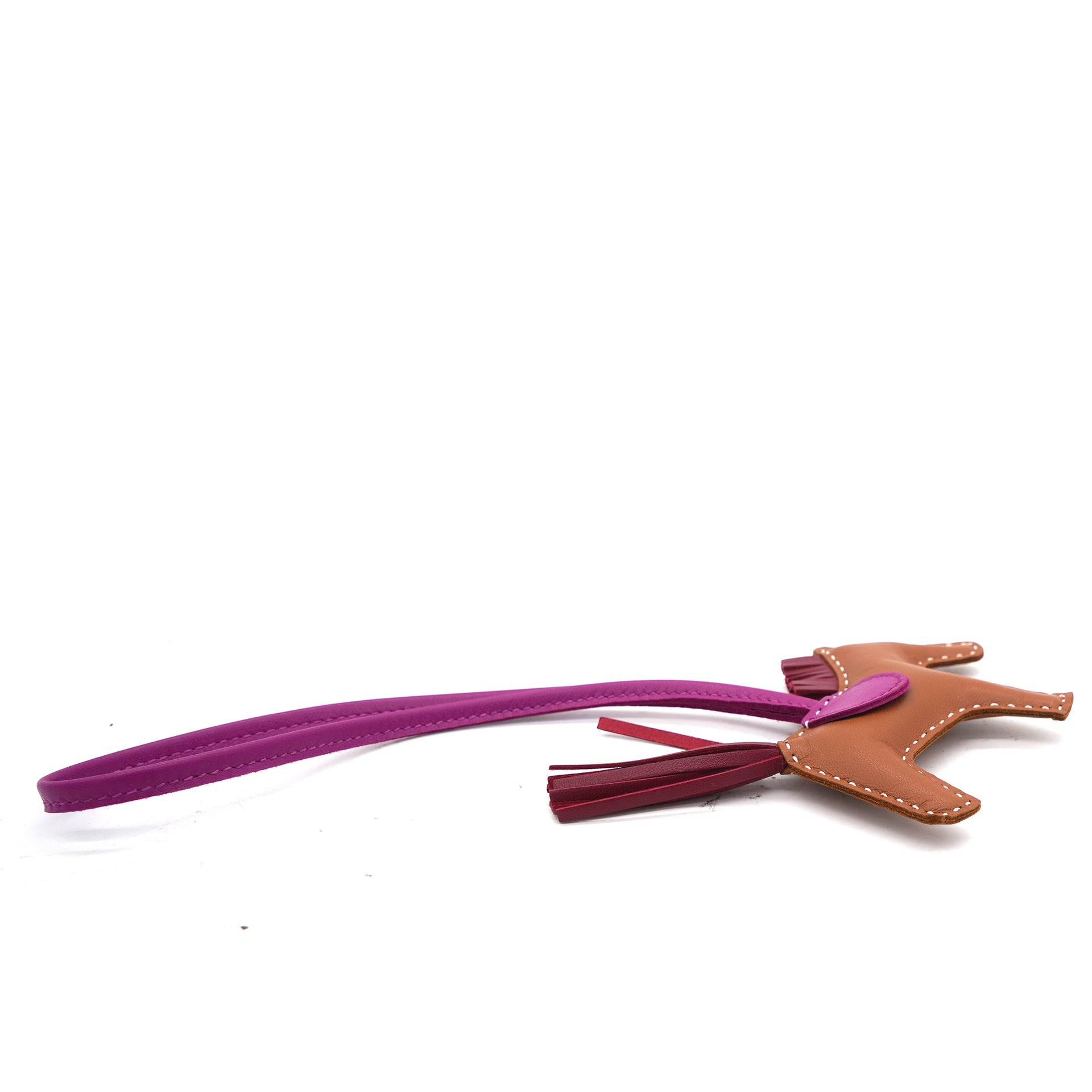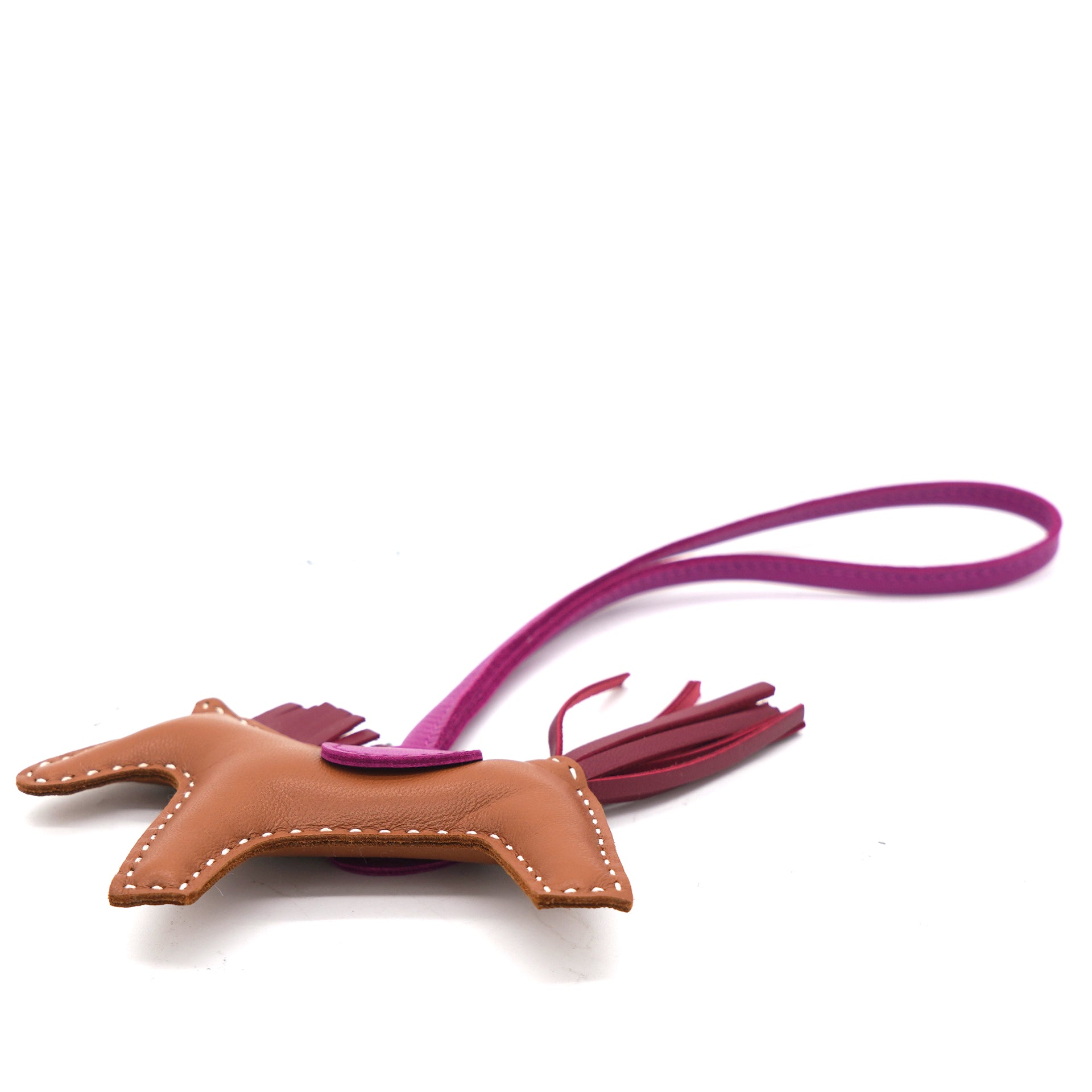 | Woah there! Take a second to admire this Hermès Rodeo PM bag charm. Decorated with a hanging tassel to resemble the horse's flowing tail, it's sure to catch an eye (or ten) swinging from your favourite bag. |