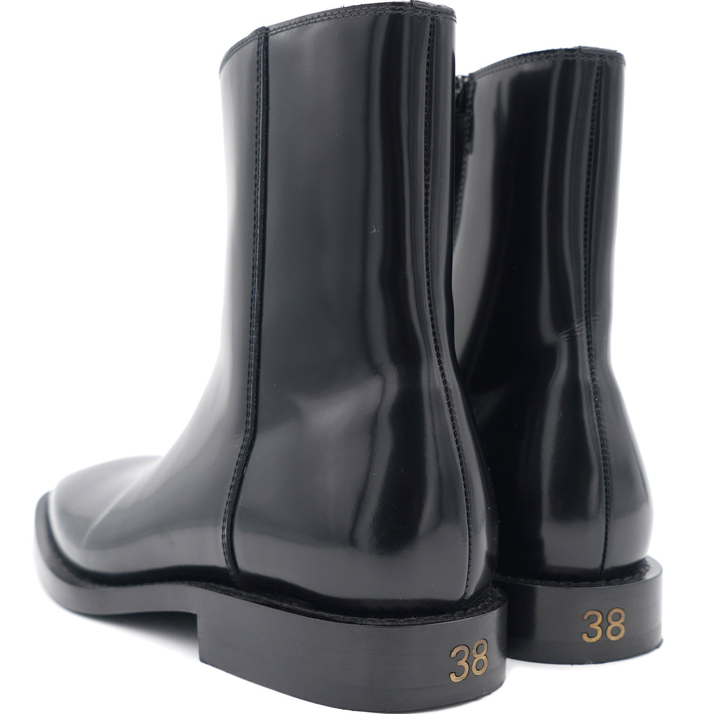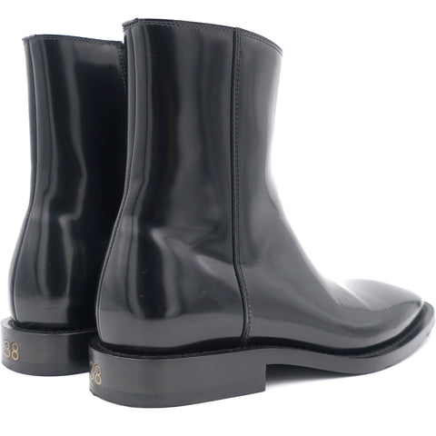 Add a structured and glamorous feel to your outfit with these boots from Balenciaga. These ankle boots are made from shiny leather and have a square-toe silhouette. These beauties will elevate any look with modern impact. The thick flat heels keep them versatile and comfortable.