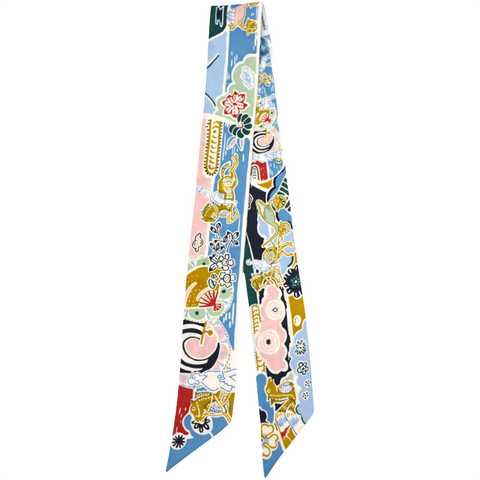 Silk Bingata Twilly Bleu Ciel Vert Rose