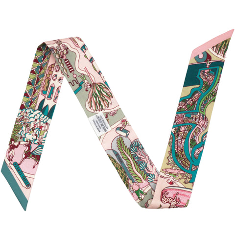 | Inspired by the design of the Exposition universelle scarf: Jan Bajtlik invites us to a universal exhibition full of surprises. Absurd humor and nods to history punctuate this multicolored map in which dinosaurs frolic under a cloche and penguins dance underwater. A Tower of Babel transformed into a spiral slide stands near a Trojan horse housing a spa, while four drones hold the Great Pyramid upside down. The designer finds inspiration in the great world fairs of the 19th century to recreate a fantasy park in which innovation, combined with gigantism, is represented in all its forms: pragmatic, poetic and entirely far-fetched. |