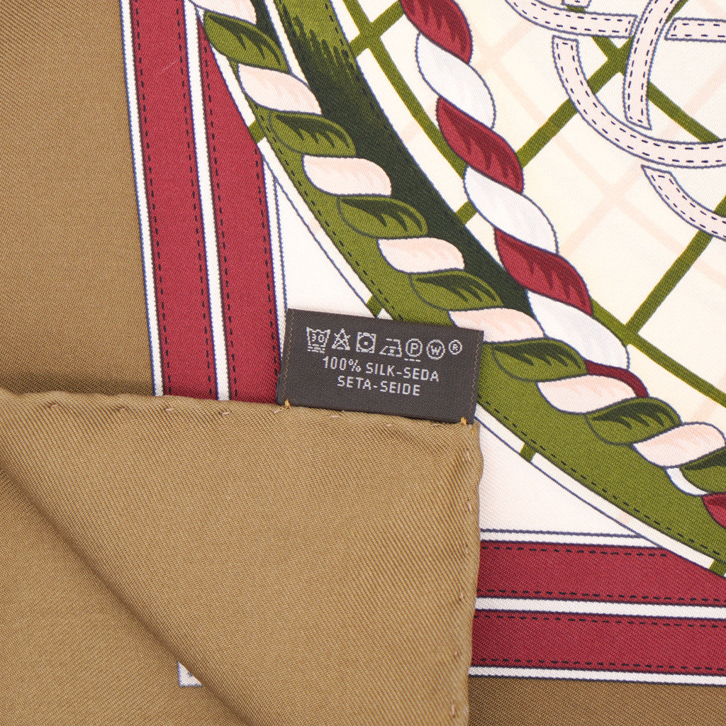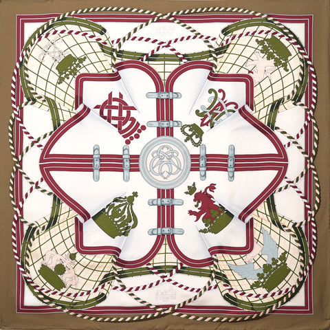 | The bold design and exceptional quality of this Hermes scarf makes it a fabulous fashion accessory. The scarf is 100% silk. |