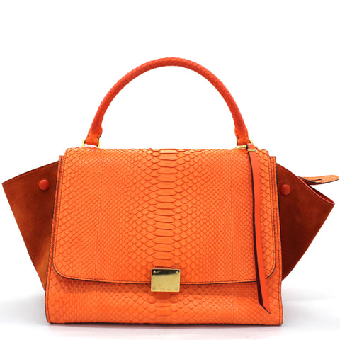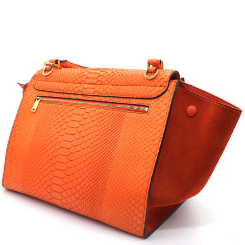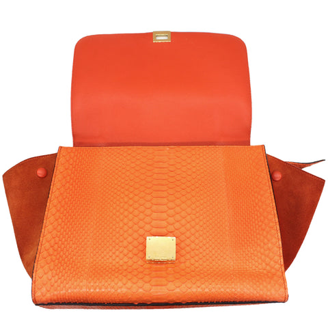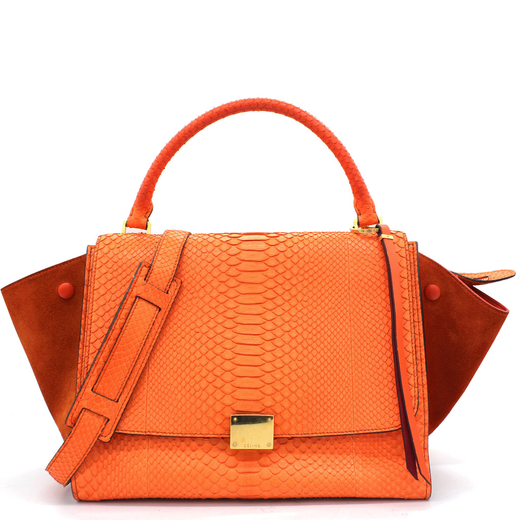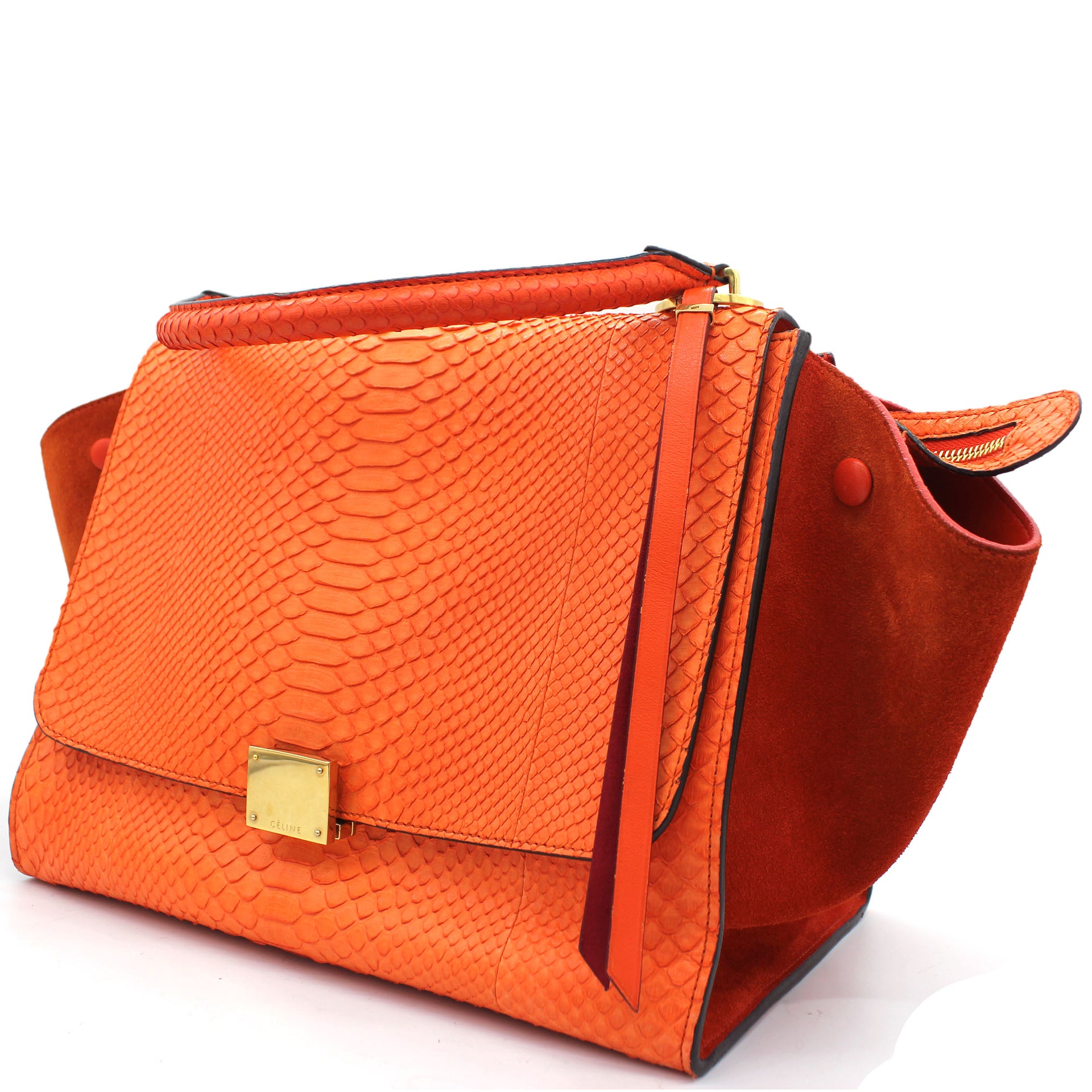| Known for its high standard and fine finish, this bag from Celine will be your companion for years to come. Enhanced with orange colour, the flap is snakeskin embossed in tonal colour, this stylish bag is all you need to flaunt your style this season. This bag is tailored from lavish leather in a handsome style. |