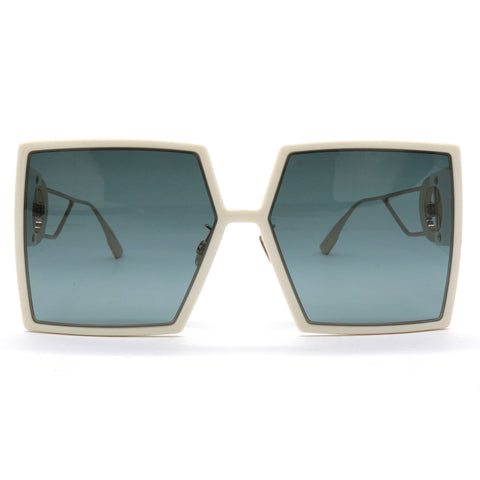 These modern sunglasses feature oversized squared rims in white and grey lenses. The arms feature an engraved CD monogram at the temple.