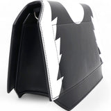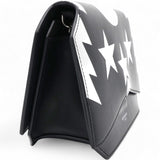 Stars Wings Print Bow Cut Black/White Crossbody Bag in Leather