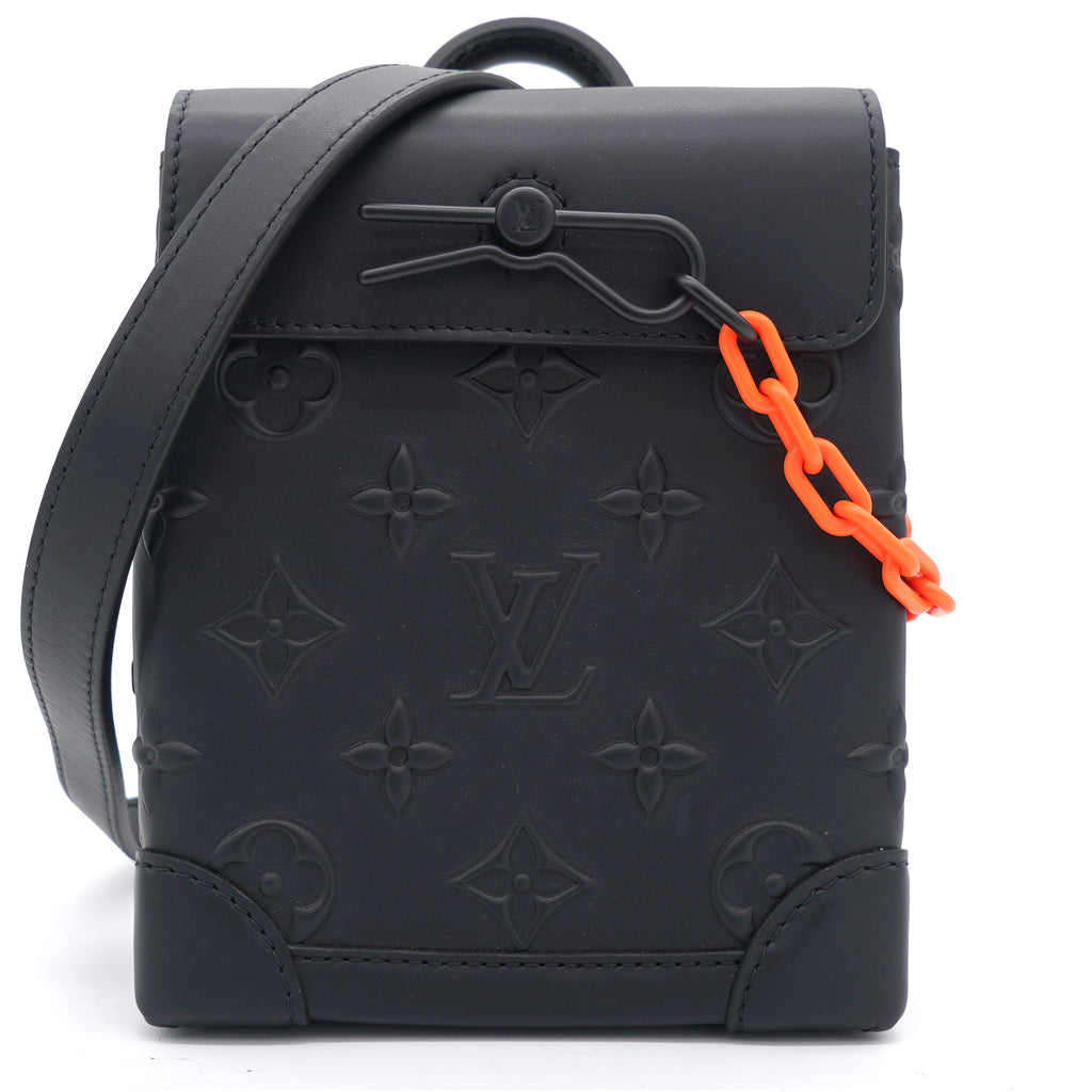 | The Steamer XS bag is a tiny version of the House’s Steamer bag. It’s made from leather with a debossed Monogram pattern and features a neon-orange chain on its chain-and-pin closure. It can be carried by hand thanks to its top handle or worn on the shoulder with the detachable strap. |