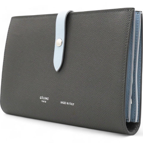 | This professional CELINE Strap Wallet is crafted from high-quality leather, adding a touch of sophistication to your daily essentials. With its secure strap closure, your belongings are safe and easily accessible. Its sleek grey design offers a classic yet modern look, perfect for any occasion. |