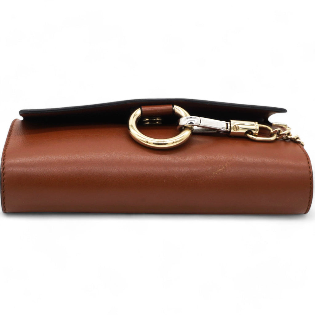 Suede Calfskin Faye Wallet On Strap Tan Micro
