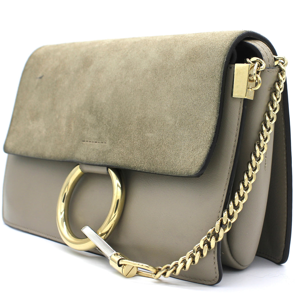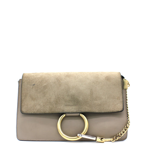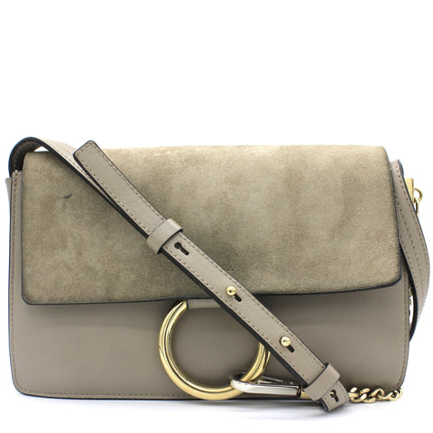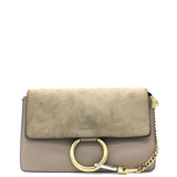 Suede Calfskin Small Faye Shoulder Bag Motty Grey
