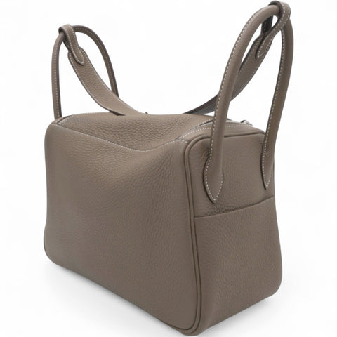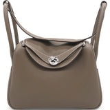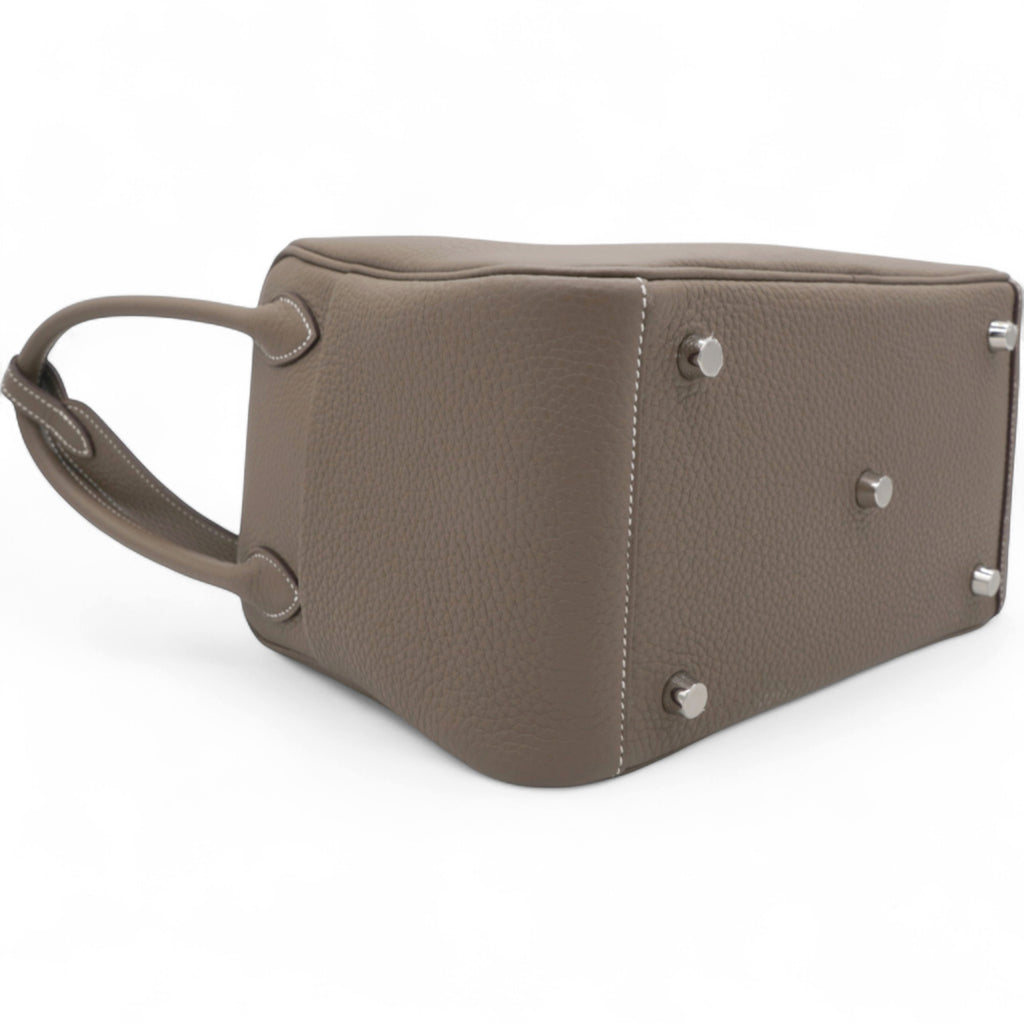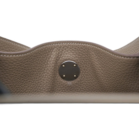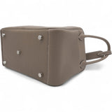 | This chic tote is crafted of luxurious taurillon clemence calfskin leather with a rich grain in taupe. This stylish bag features frontward facing rolled leather top handles on either side with an attached shoulder strap and a cross-over top flap with a silver turn-lock closure. This opens with double zippers to a matching leather interior with patch pockets. |