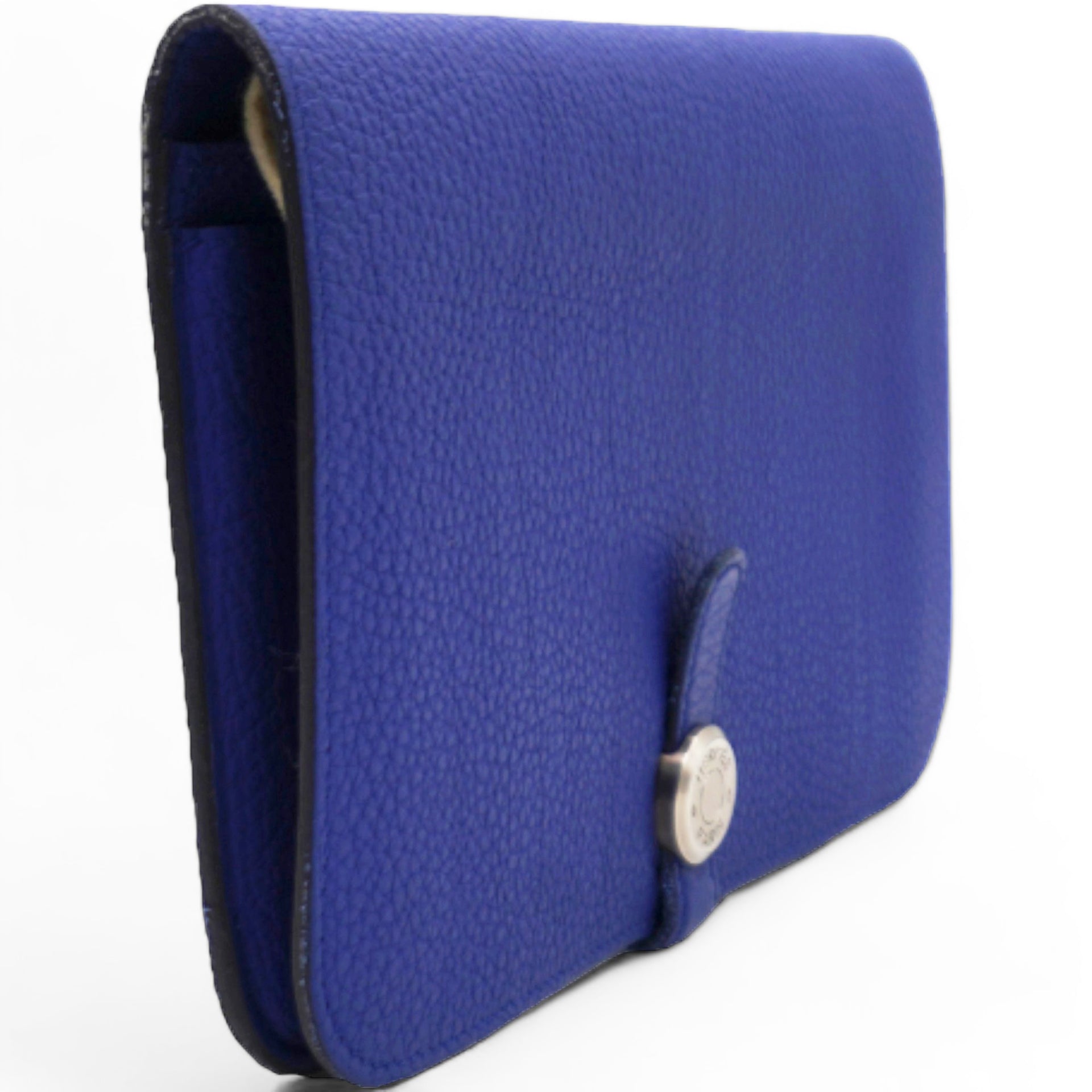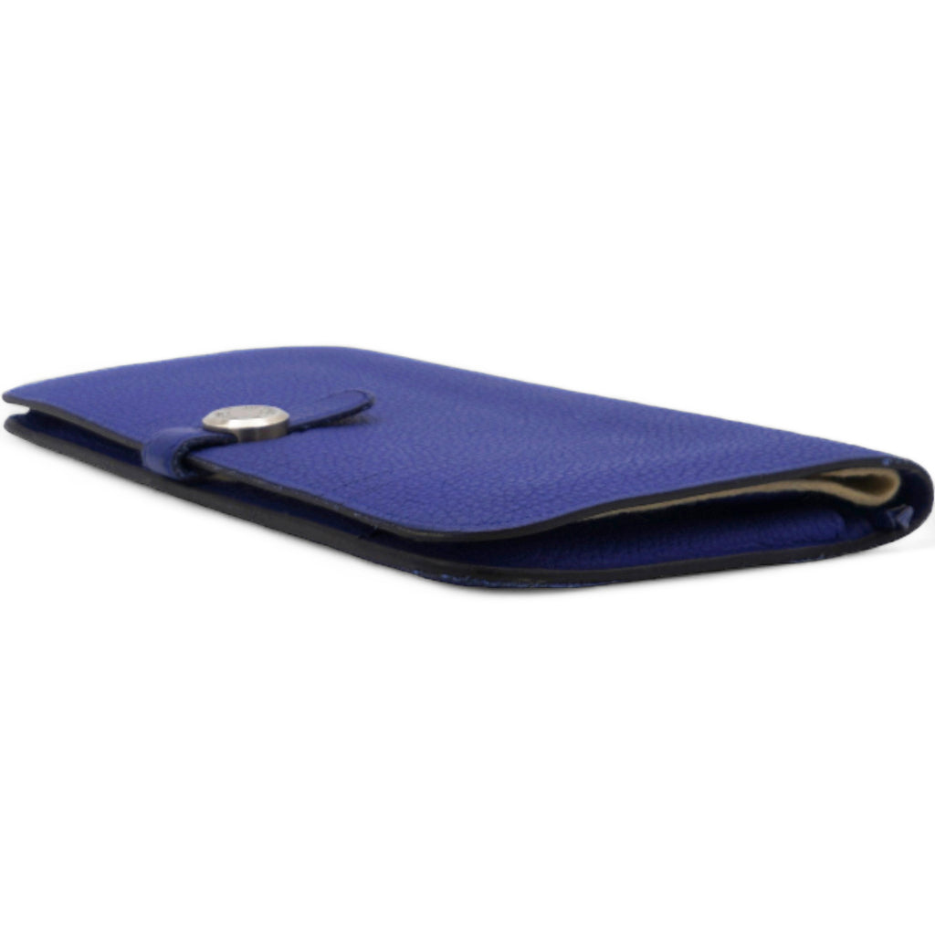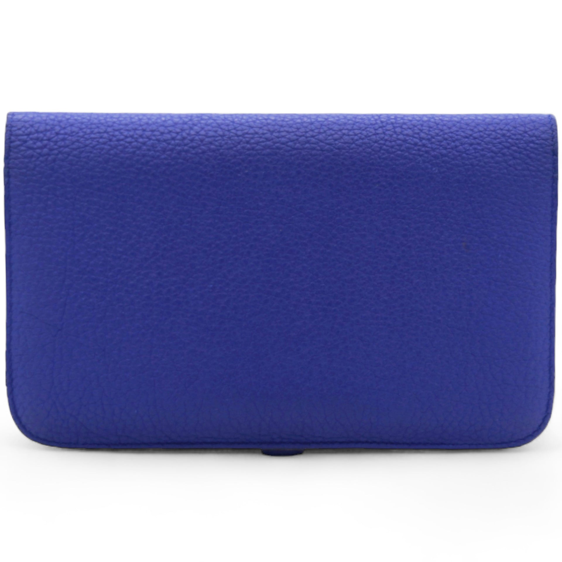 | This sophisticated clutch wallet is finely crafted of togo calf leather in royal blue. The wallet opens to a spacious interior of patch pockets and card slots with a zippered pochette. This is a lovely clutch wallet that is as practical as it is chic with the classical sophistication of Hermes! |