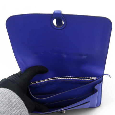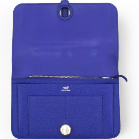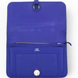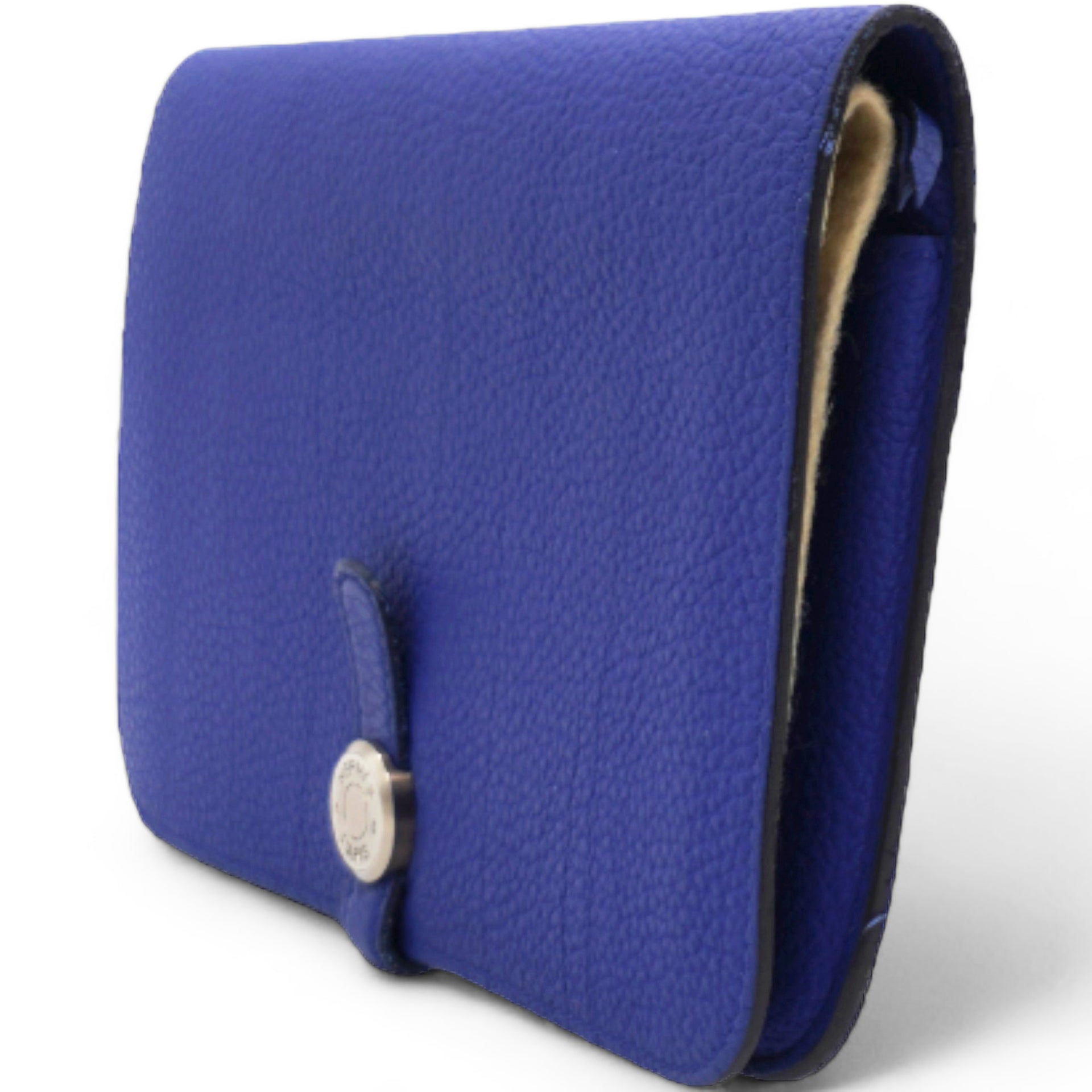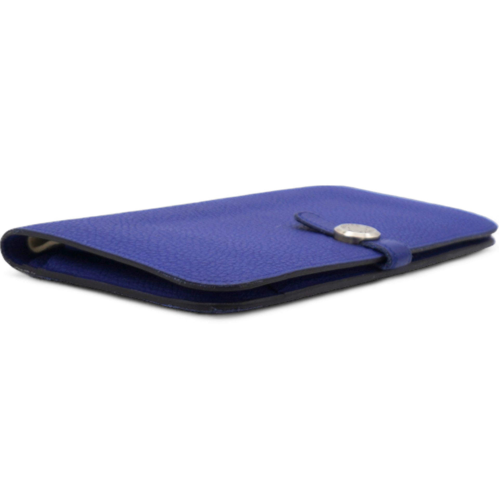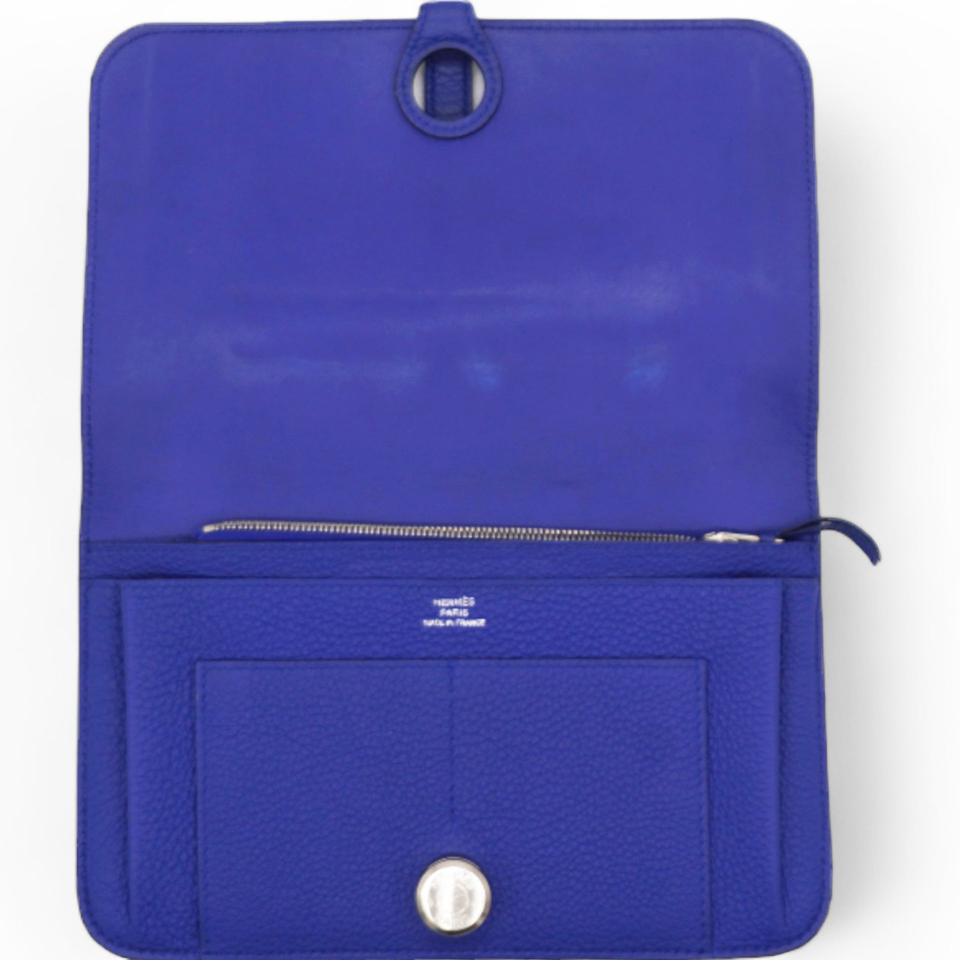 | This sophisticated clutch wallet is finely crafted of togo calf leather in royal blue. The wallet opens to a spacious interior of patch pockets and card slots with a zippered pochette. This is a lovely clutch wallet that is as practical as it is chic with the classical sophistication of Hermes! |