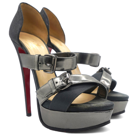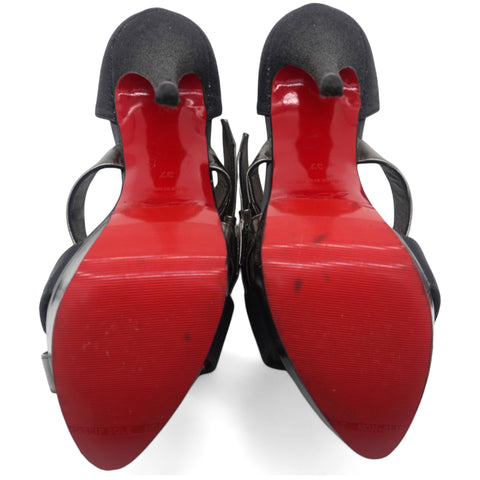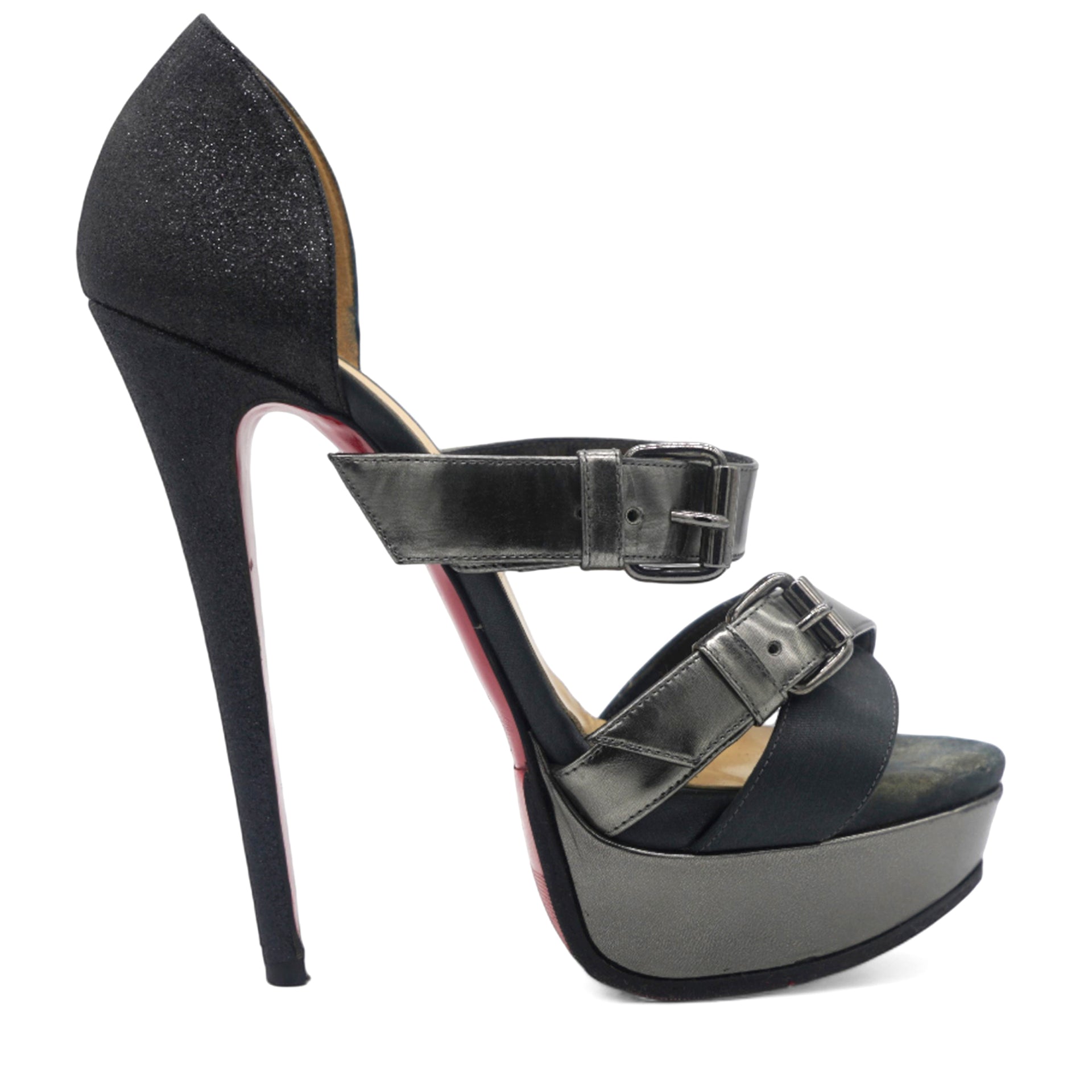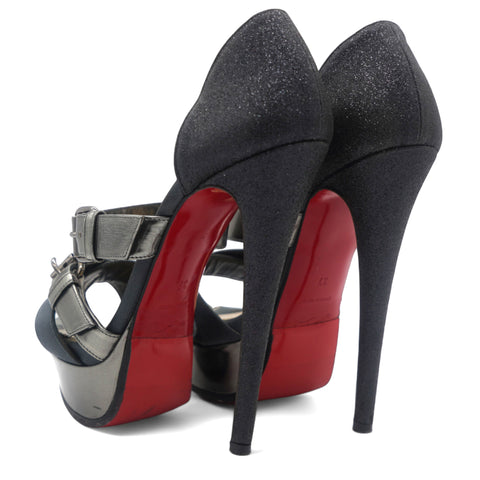 Black Glitter and Satin Ambertina Platform Sandals Size 37