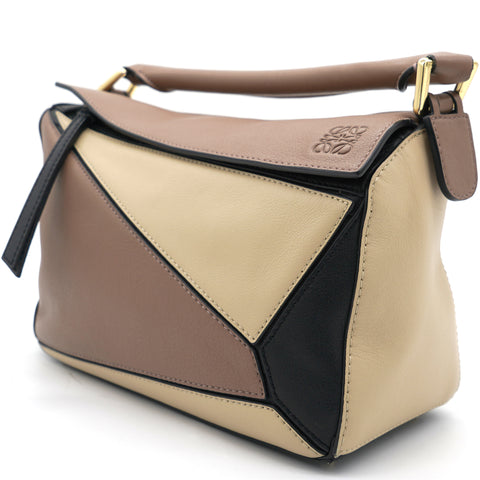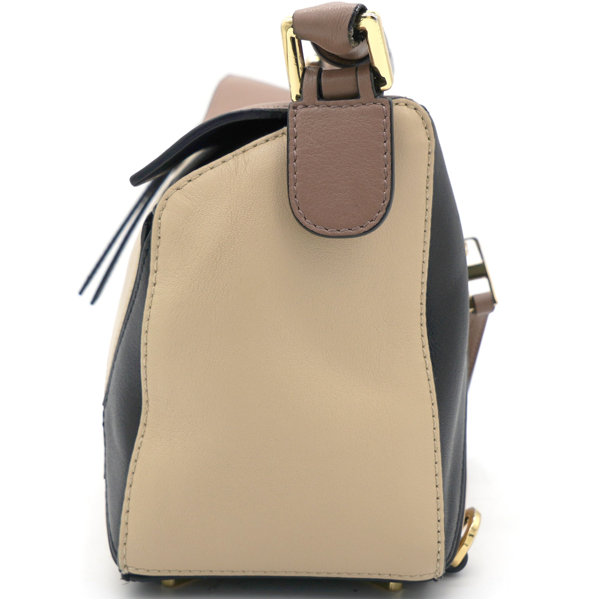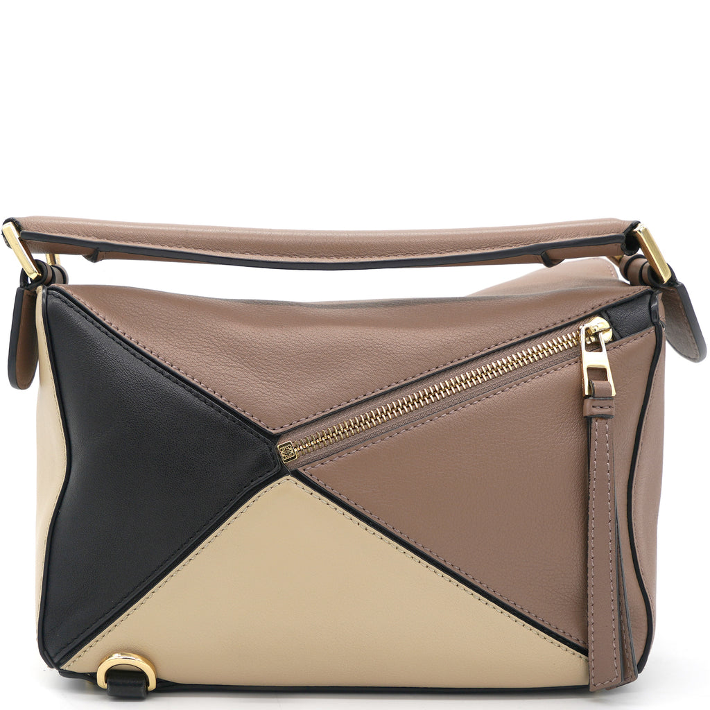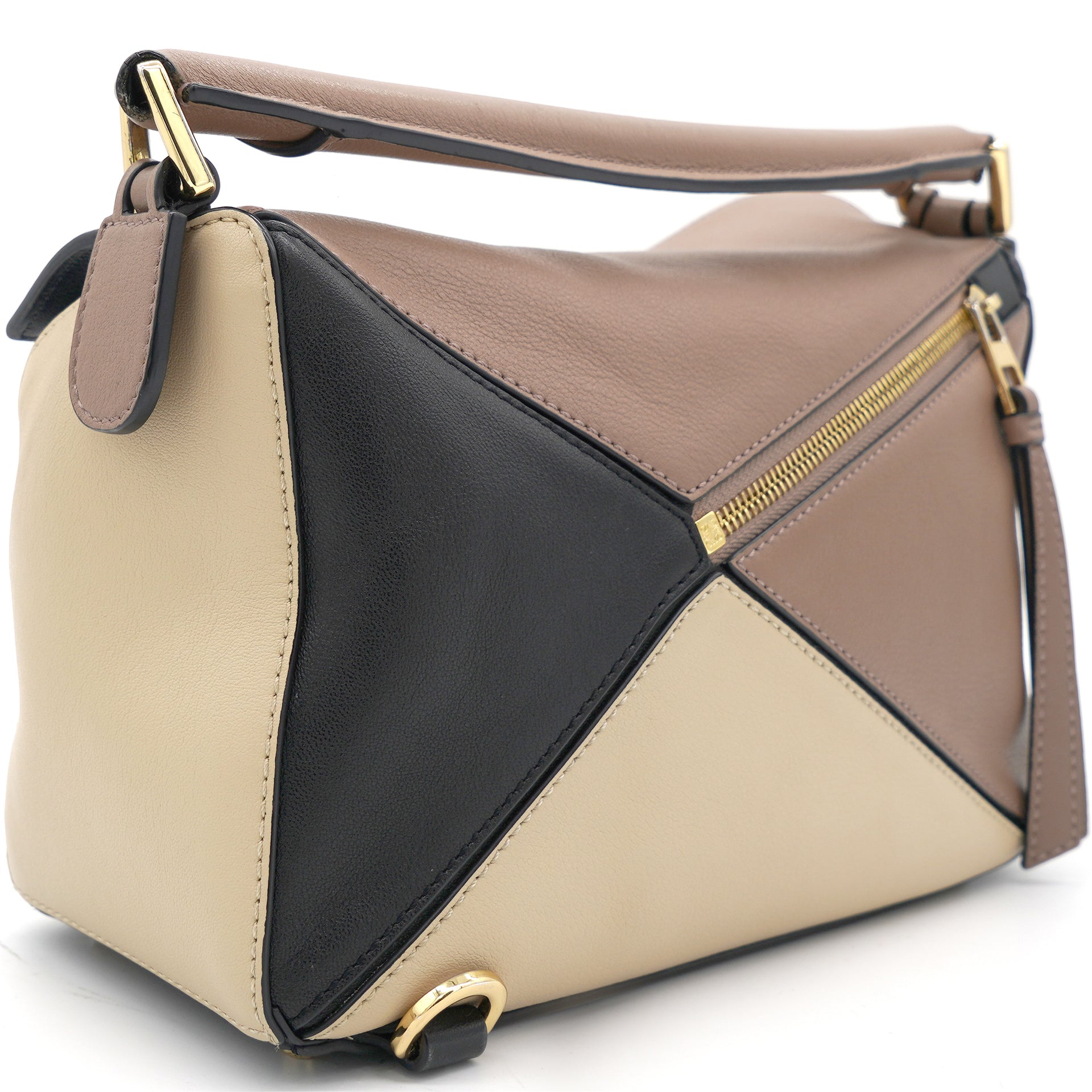 | Released in 2015, this Puzzle Loewe bag remains to be a coveted piece even today! A structured bag can assist you with many outings and can be styled with most of your attires. This bag is an example of the label’s penchant for creating staple pieces. It is crafted from leather in a beige, light beige and black shade and features a logo-accented front flap that opens to a well-sized interior. The bag is finished off with a unique handle. |