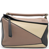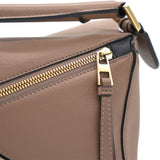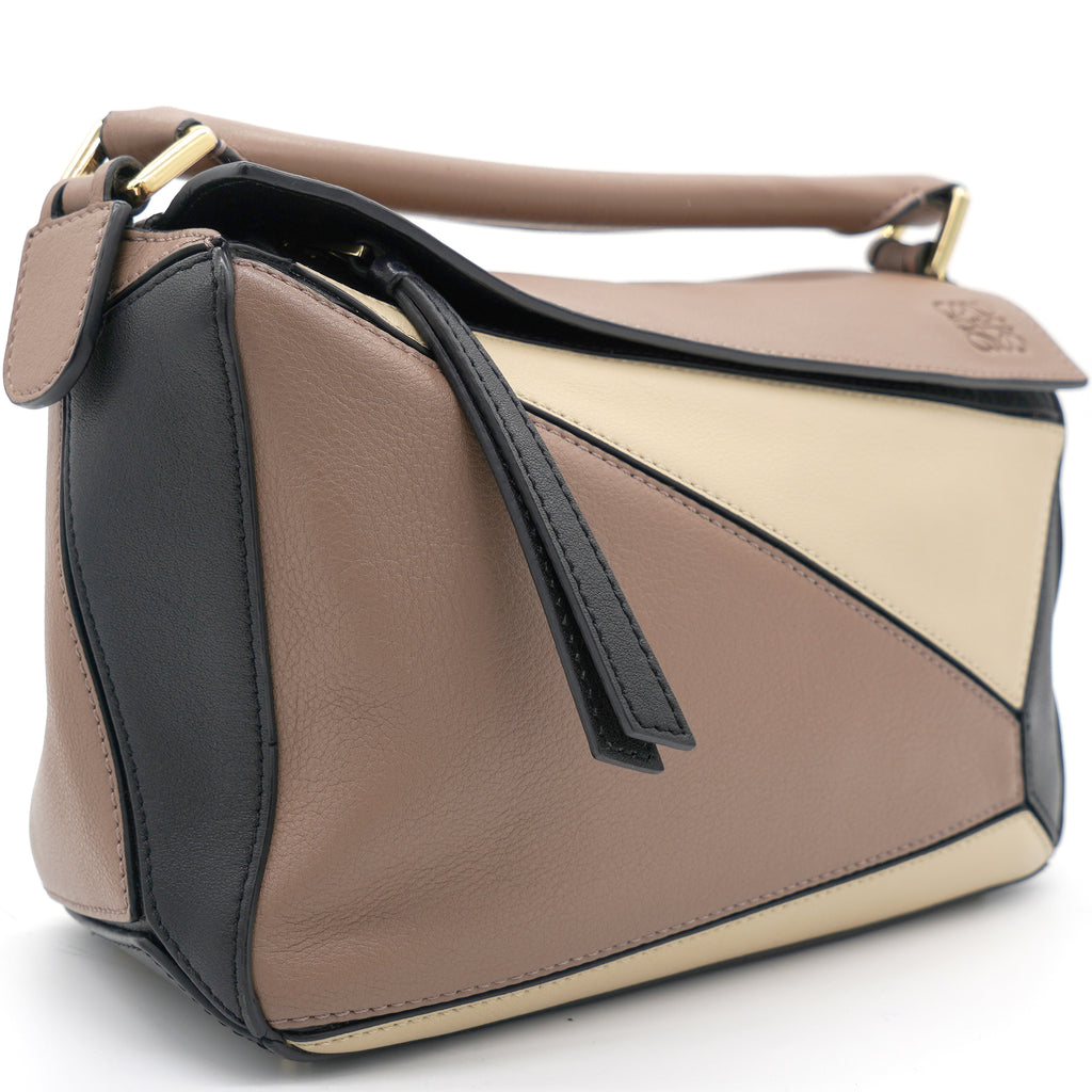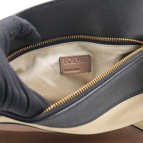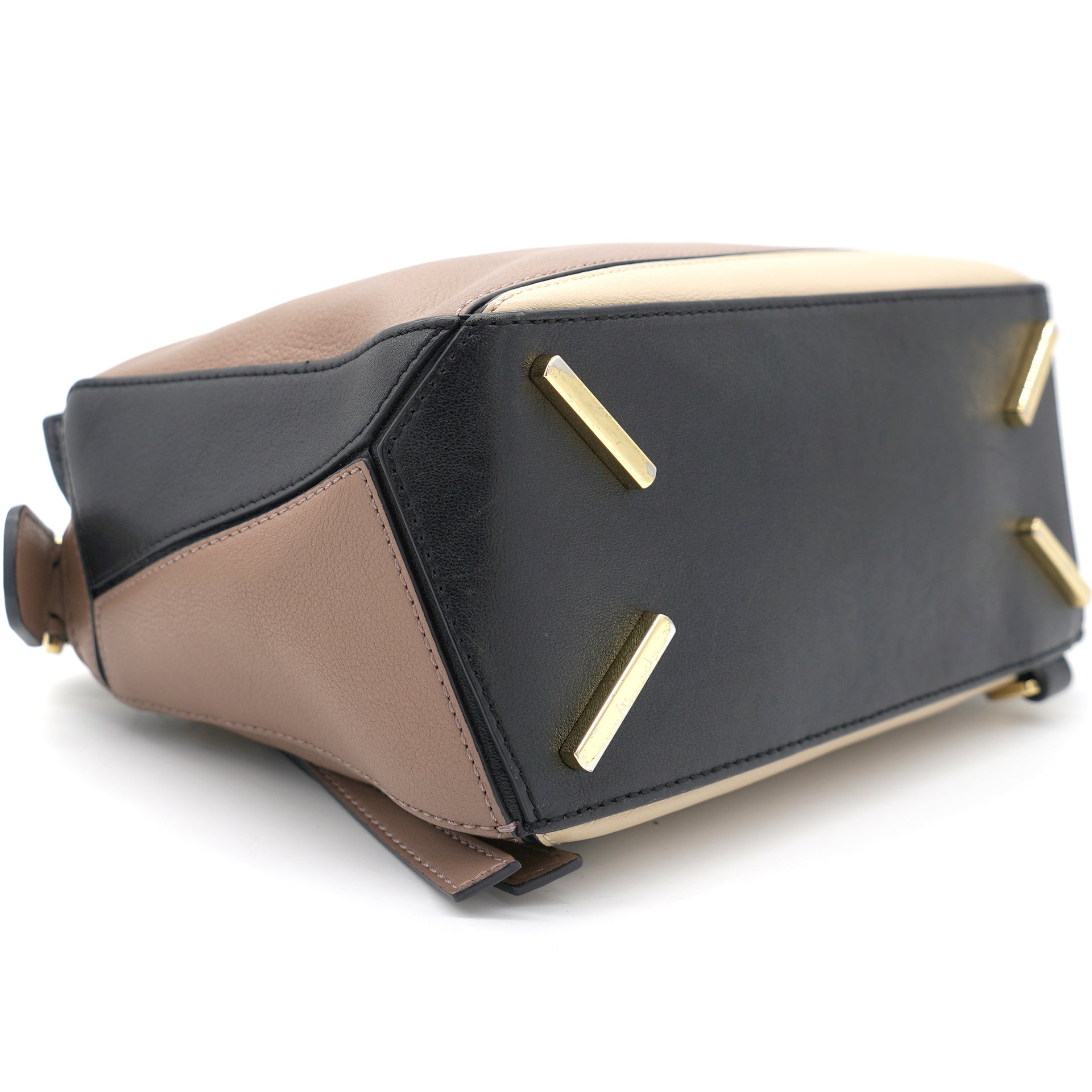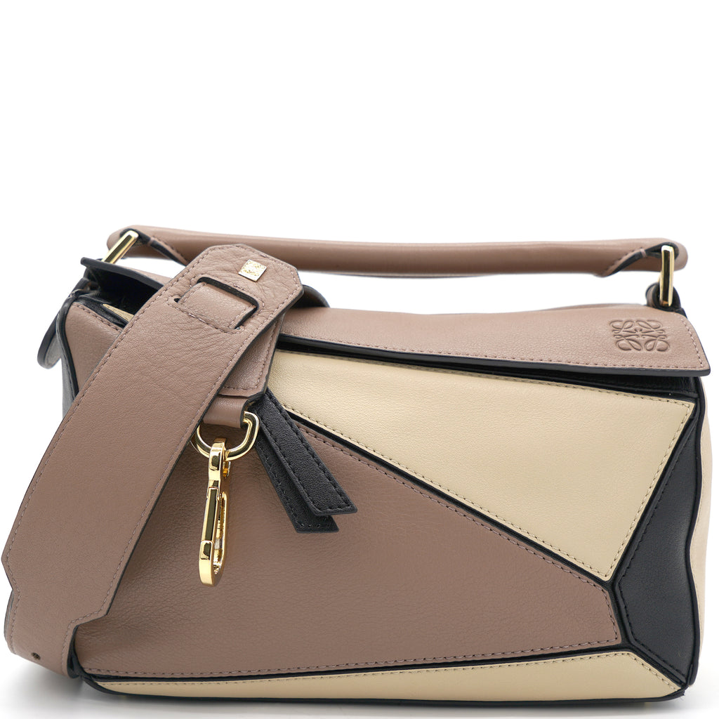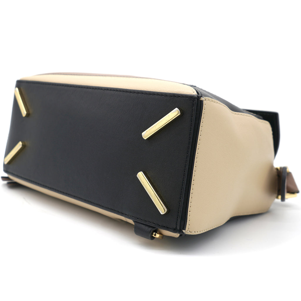 | Released in 2015, this Puzzle Loewe bag remains to be a coveted piece even today! A structured bag can assist you with many outings and can be styled with most of your attires. This bag is an example of the label’s penchant for creating staple pieces. It is crafted from leather in a beige, light beige and black shade and features a logo-accented front flap that opens to a well-sized interior. The bag is finished off with a unique handle. |