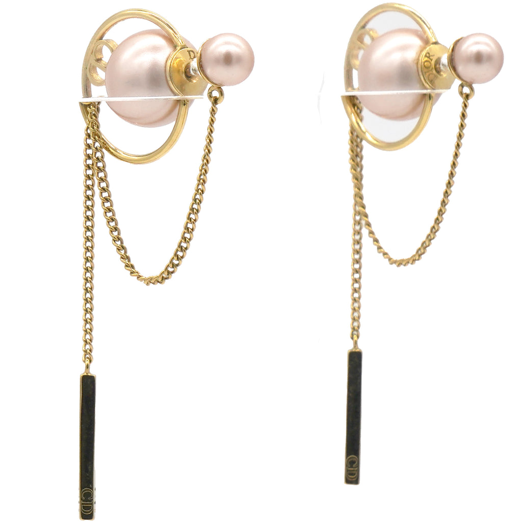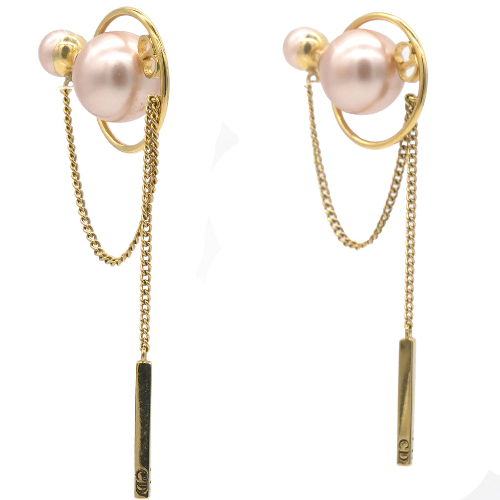 Tribales Faux Pearl Gold Tone Chain Dangle Earrings