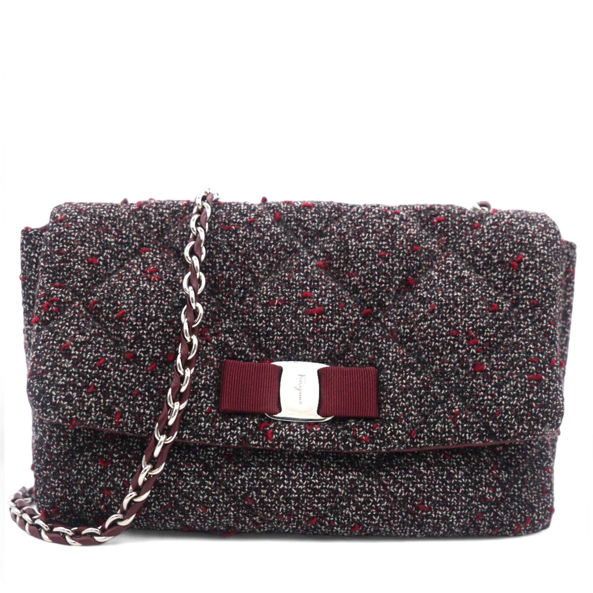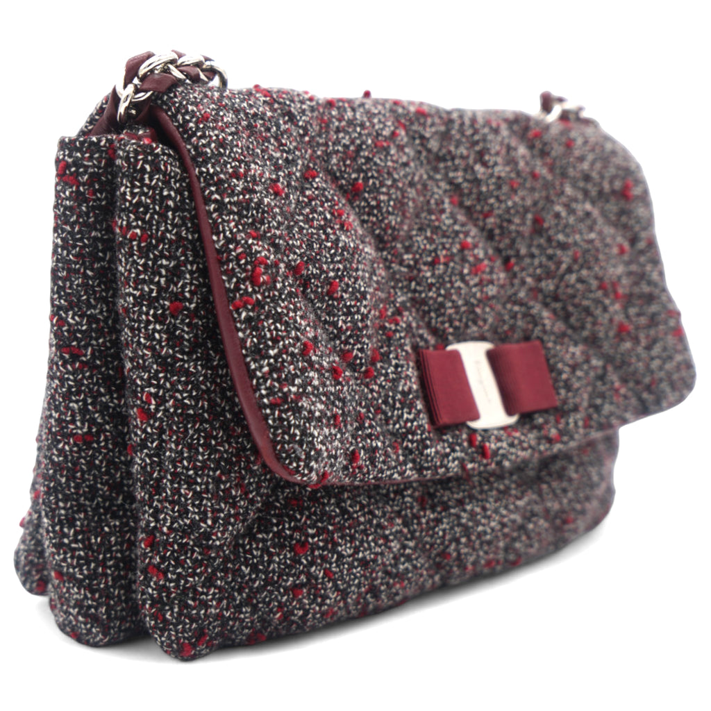 Tweed Quilted Gelly Bag Burgundy Multicolor