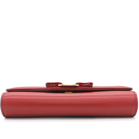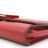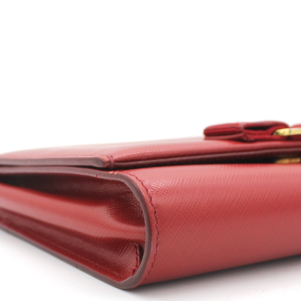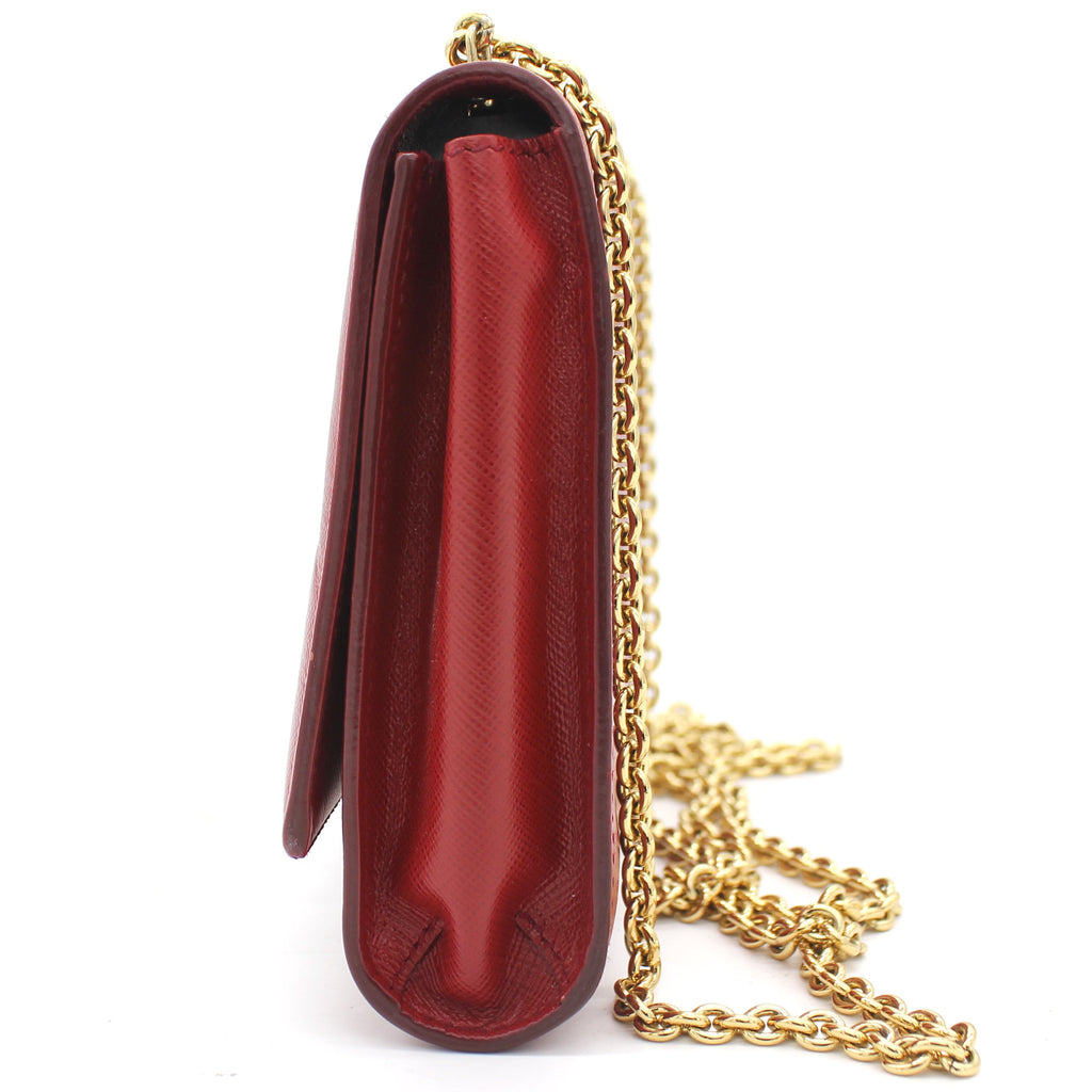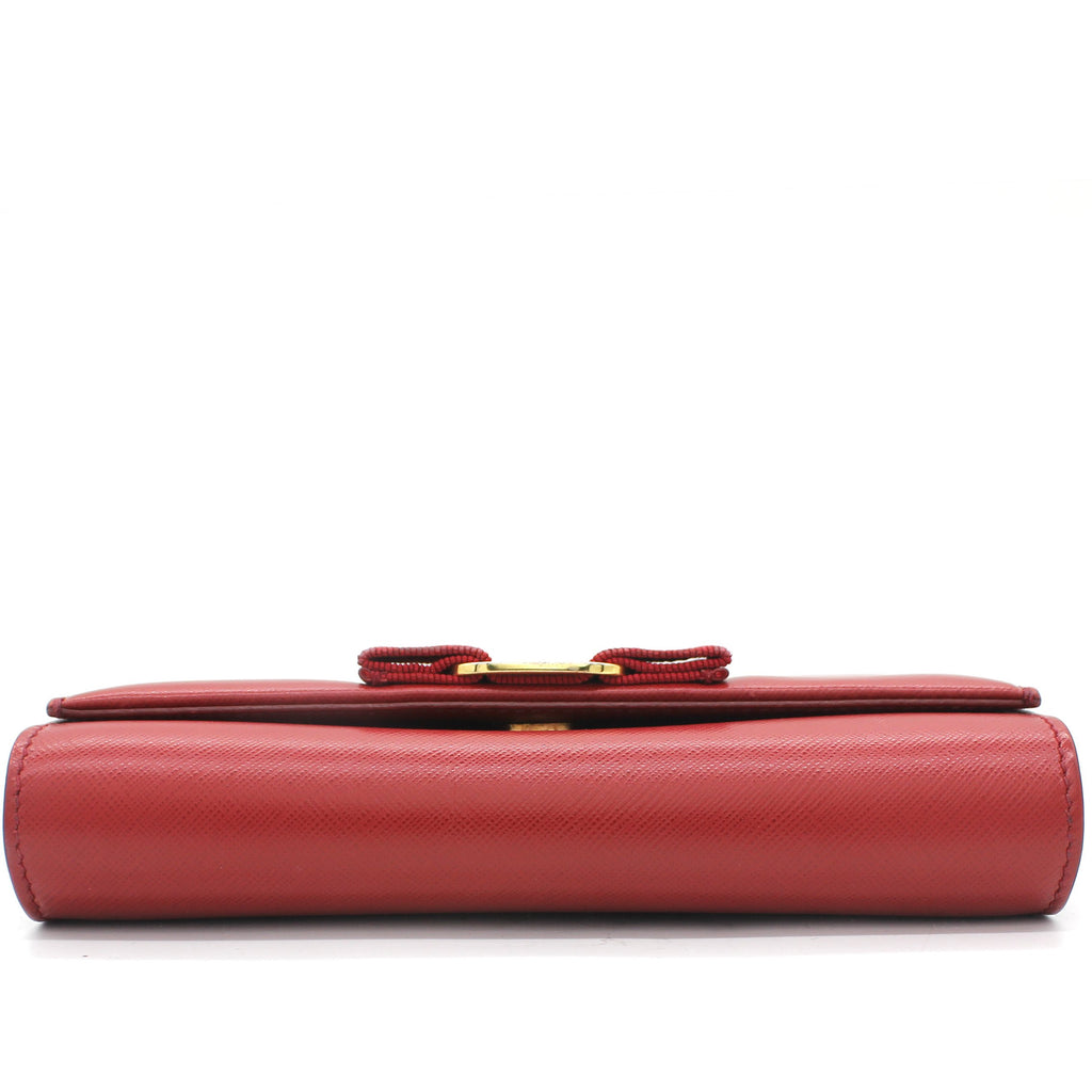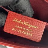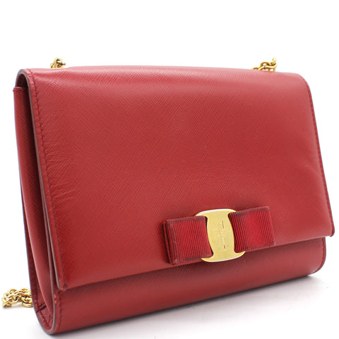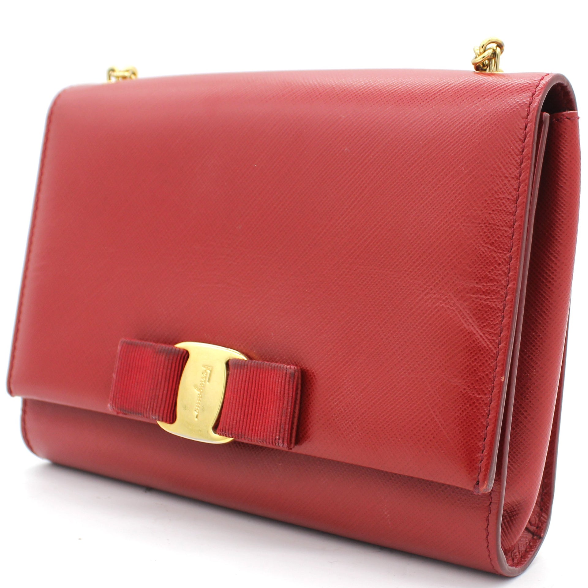 | There's nothing sweeter than the shy shade of Ferragamo's Vara Mini Bag. Crafted from thick, textured red leather with gold hardware, this bashful little bag has a small ribbon bow on the front and a long, detachable chain strap. The flap secures with a true snap and inside you'll find tonal leather and fabric lining with a slit pocket. |