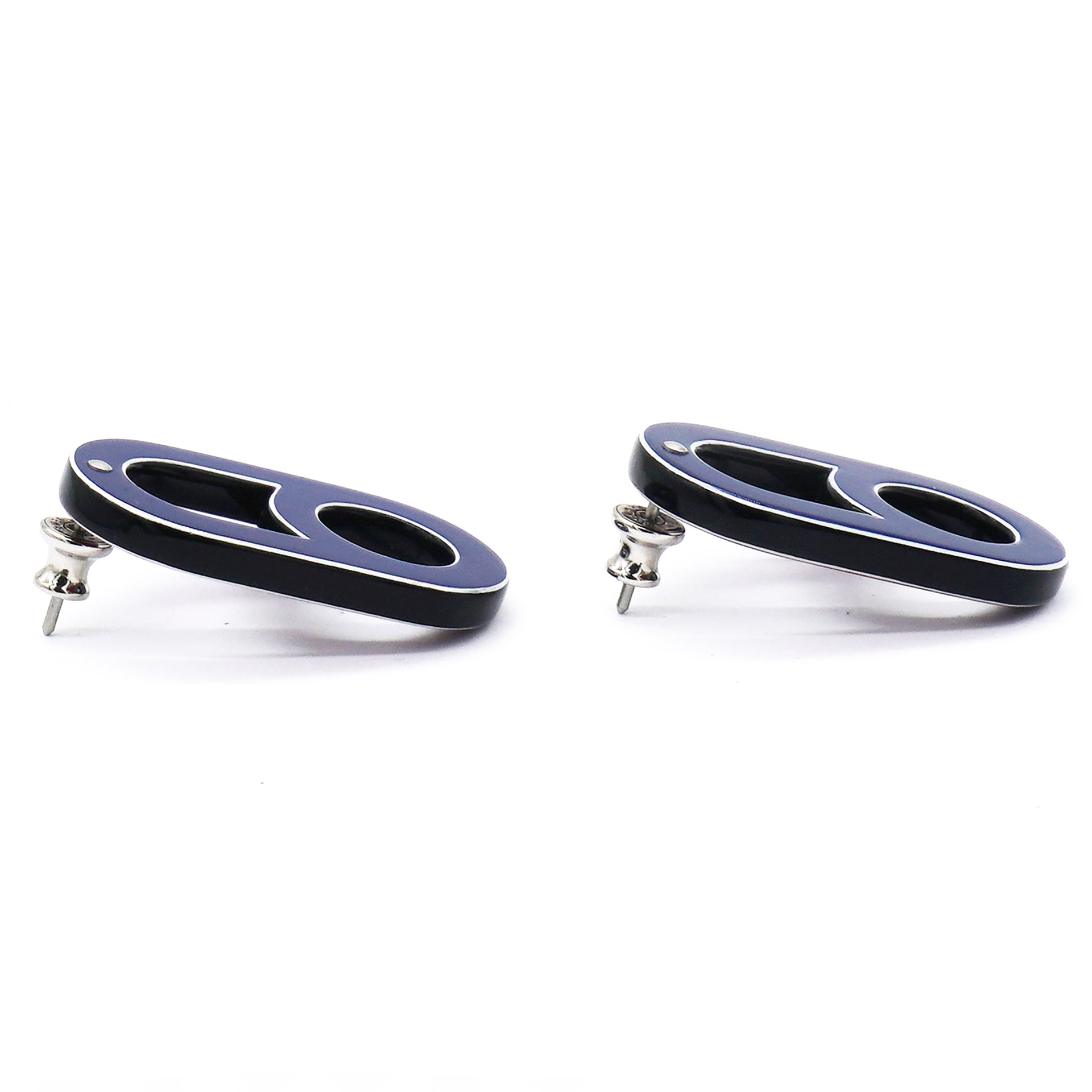 Expertly crafted from high-quality materials, these Hermes Variation Earrings showcase a stunning lacquer design in shades of blue, red, and black. Add a touch of sophistication to any outfit with these unique and versatile earrings. Perfect for any fashion-forward individual looking to make a statement.