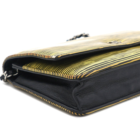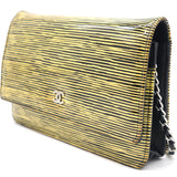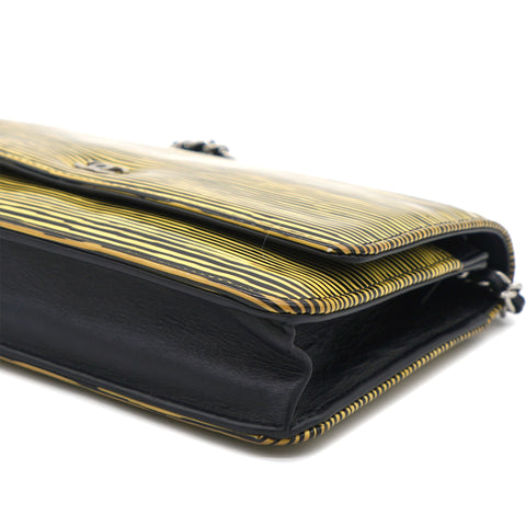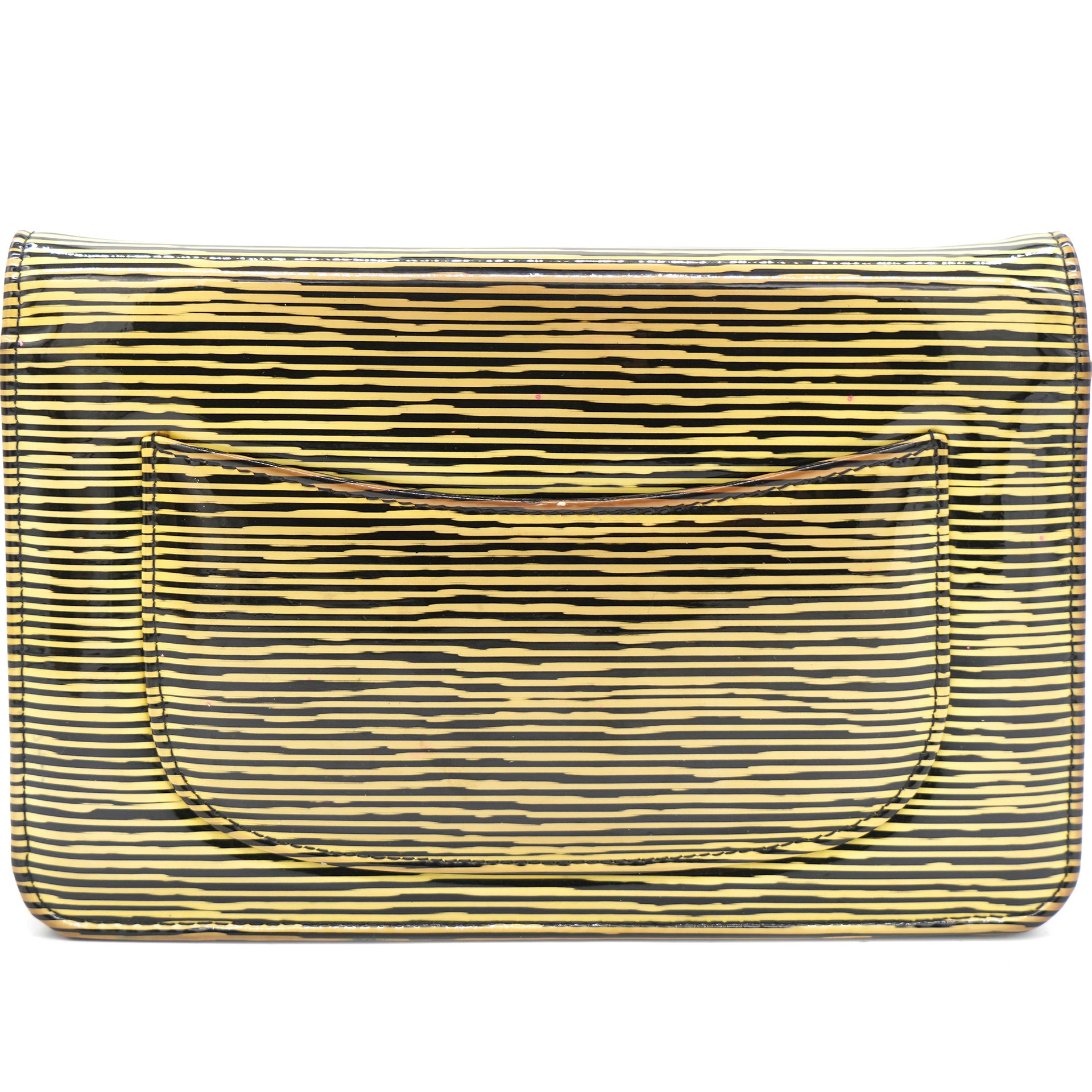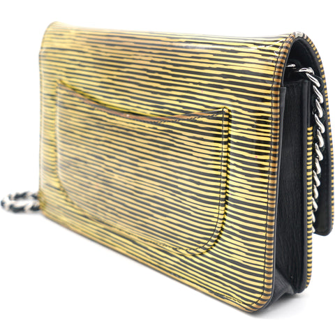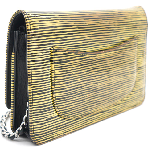 Yellow and Black Patent Calfskin Striped Wallet on Chain